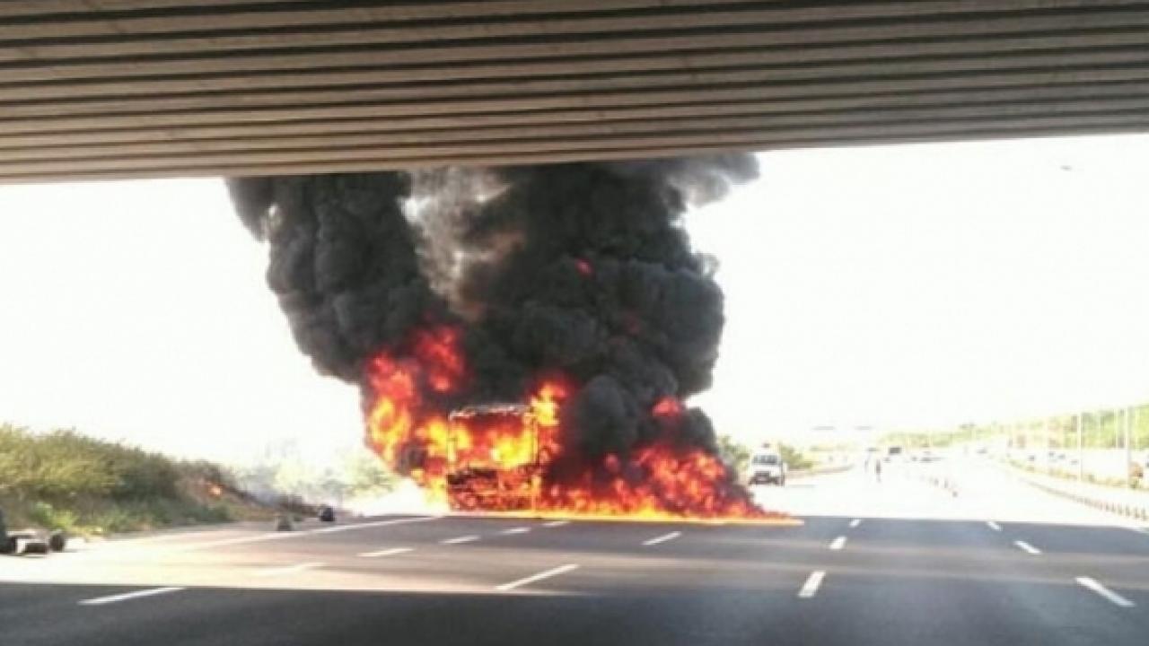 Yangın, saat 17.00 sıralarında Kuzey Marmara Otoyolu Ankara istikametinde ilerleyen yolcu otobüsünde çıktı. Yangını fark eden şoför otobüsü durdurarak yolcuları tahliye etti. Haber verilmesi üzerine olay yerine çok sayıda itfaiye polis ve sağlık ekibi sevk edildi. İtfaiye ekiplerinin müdahalelisiyle yangın söndürüldü. Otobüs tamamen yandı. Ekiplerin soğutma çalışmaları sürüyor.