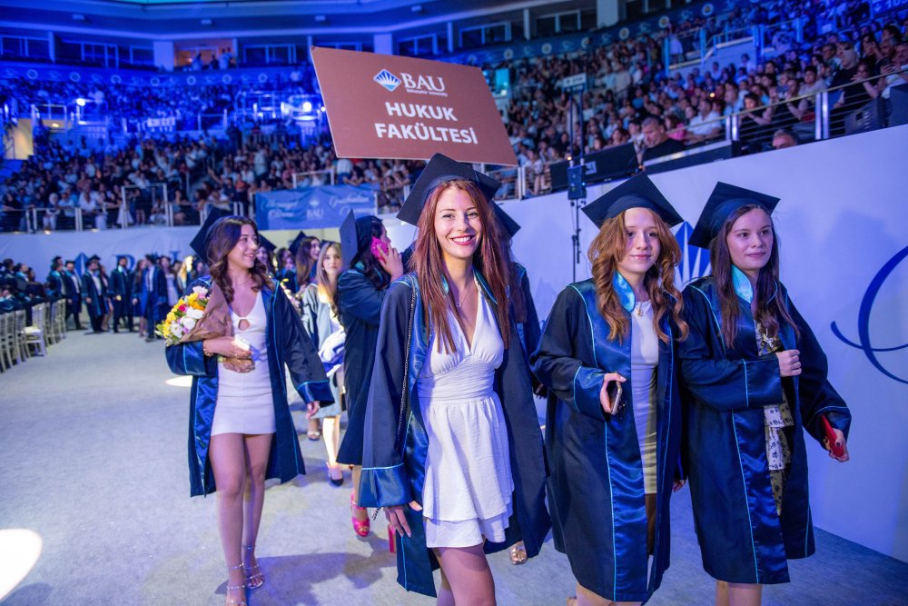 Bahçeşehir Üniversitesi'nin (BAU) 2023-2024 eğitim-öğretim dönemi mezuniyet töreni, bu yıl Ülker Sports Arena'da yapıldı. 24'üncü dönem mezunlarını veren Bahçeşehir Üniversitesi'nden, dokuz fakülte, iki yüksekokul, bir enstitü ve konservatuar bölümünden mezun olan 6 bin öğrenci, kep atma gururu yaşadı. İstiklâl Marşı'nın okunmasıyla başlayan törene Bahçeşehir Üniversitesi Mütevelli Heyeti Başkanı Enver Yücel, Mütevelli Heyeti üyeleri, Bahçeşehir Üniversitesi Rektörü Prof. Dr. Esra Hatipoğlu, senato üyeleri, öğretim üyeleri, akademisyenler ve öğrencilerin aileleri katıldı.