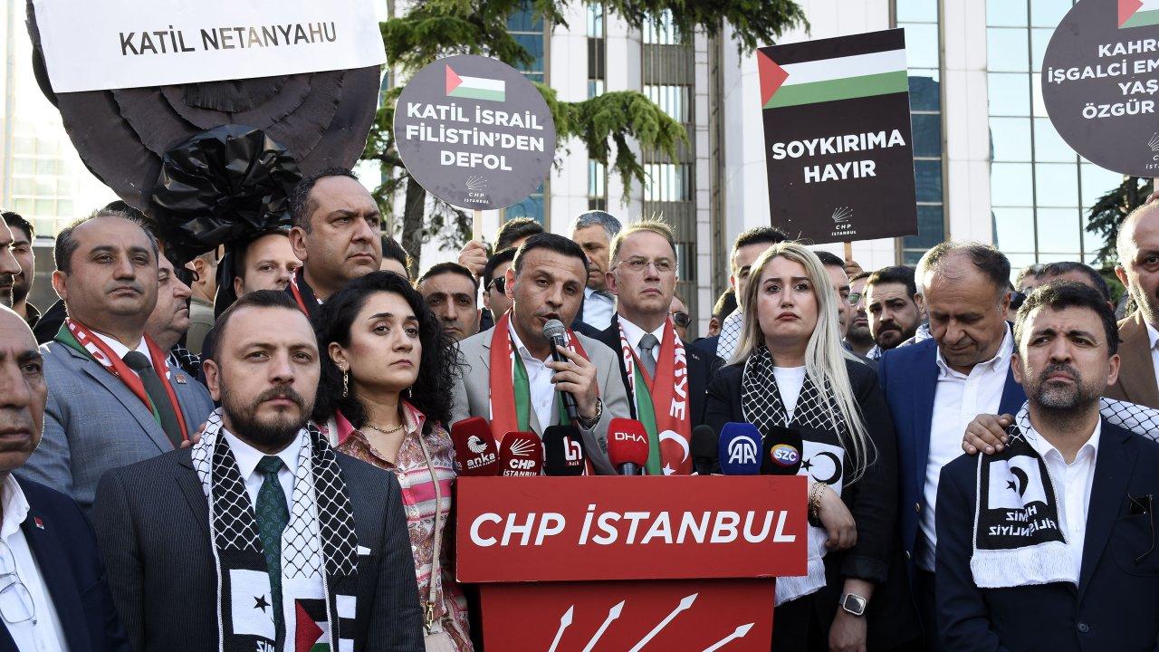 CHP İstanbul İl Başkanlığı öncülüğünde bir araya gelen CHP üyesi bir grup, İsrail'in Filistin'e yönelik sürdürdüğü ve binlerce insanın hayatını kaybettiği saldırılara dur demek için saat 18.30'da Levent'teki İsrail İstanbul Başkonsolosluğu önünde eylem yaptı. Eyleme, CHP İstanbul İl Yönetimi, Parti Meclis üyeleri, ilçe başkanları ile Beyoğlu, Beşiktaş ve Beylikdüzü belediye başkanları da destek verdi. Ellerinde Filistin halkını destekleyen dövizler bulunan eylemciler, İsrail ordusu aleyhine sloganlar attı.