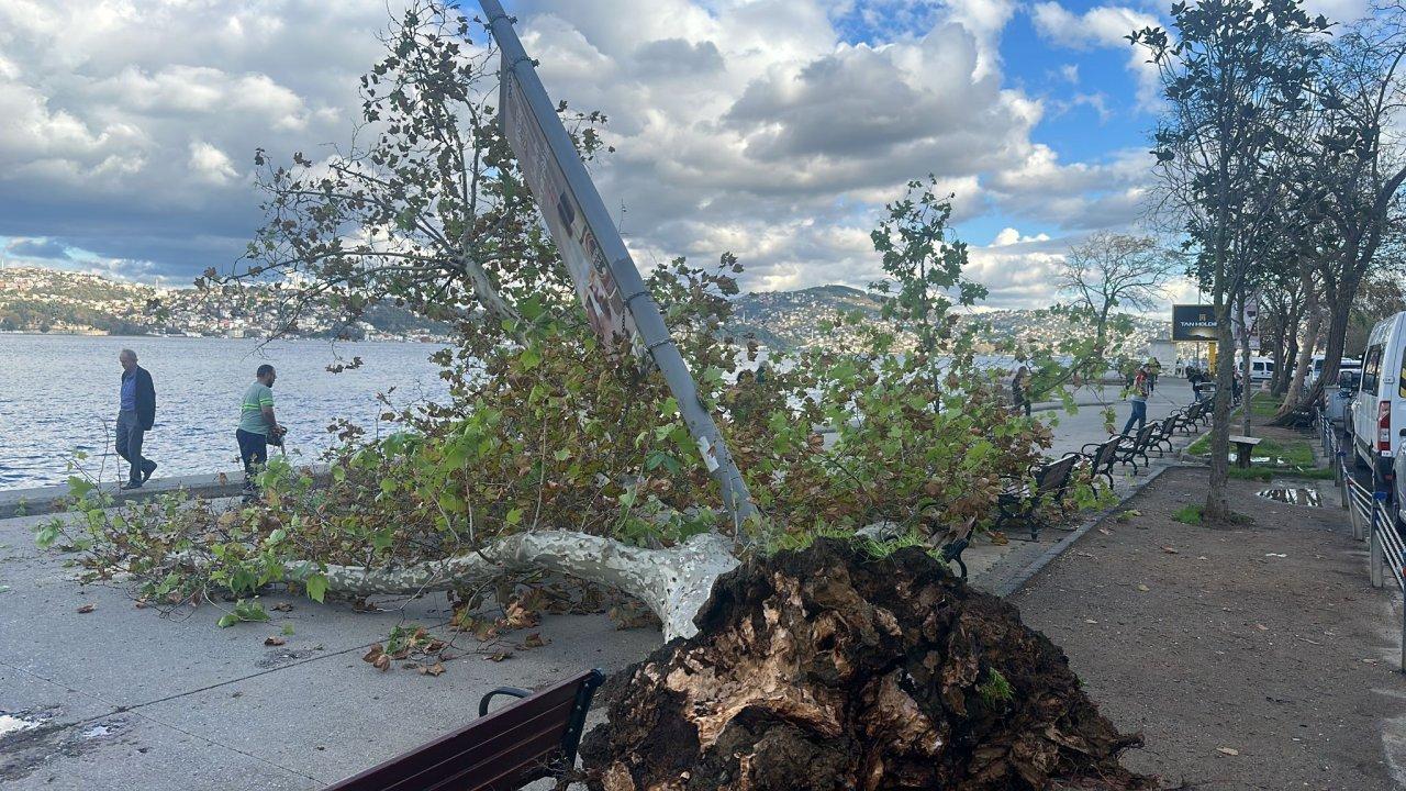 İstanbul Sarıyer'de kökünden sökülen çınar ağacı aydınlatma direğinin üzerine devrildi. Kaldırıma devrilen ağaç belediye ekipleri tarafından kesilerek kaldırıldı.