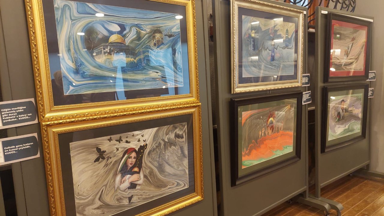 Sergide eserleri bulunan sanatçı Muhammed Hamdi Kasapoğlu "Sergideki resimleri hazırlamaya 2018 yılında başladık. Filistin hükümeti bağımsızlığını ilan etmesine ve 100'e yakın ülkenin bunu tanımasına rağmen halkına bağımsız yaşama hüviyeti tanınmadı. Zulümler, haksızlıklar ve işgaller devam etti. 2018 yılında Filistin'in bağımsızlığının 32'nci yıl dönümü anısına Kudüs ve Filistin meselesini anlatmak için 32 parçadan oluşan çalışma hazırlamaya karar verdim. Sanat inceliklerle ilerliyor 6 yılda tamamladım. Bu yıl Filistin devletinin bağımsızlık ilanın 36'ncı yıl dönümü. O nedenle sergide 36 eser var. Eserler ebru ve minyatür teknikleri üst üste kullanılarak hazırlandı" dedi.