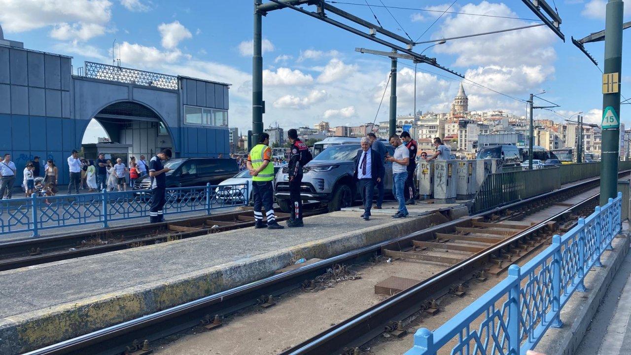 Metro İstanbul'dan yapılan açıklamada, "T1 Kabataş-Bağcılar Tramvay Hattımızda Galata Köprüsü üzerinde kara yolu aracının ray hattımıza girmesi ve yolumuzun kapanması nedeniyle seferlerimiz Eminönü istasyonundan aktarmalı olarak yapılmaktadır" denildi.