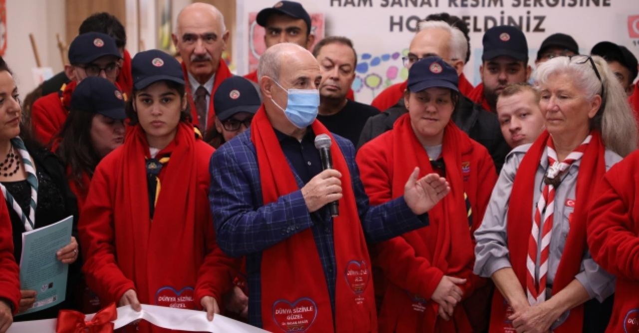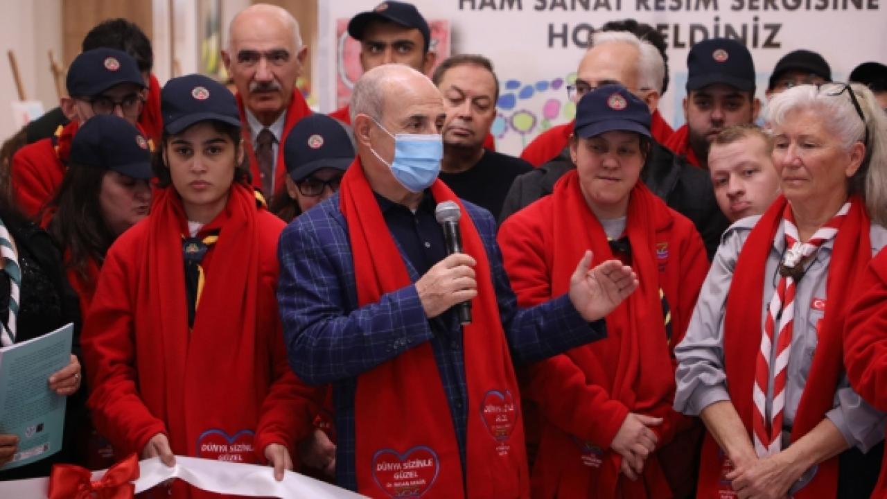 Büyükçekmece Belediyesi Dumlupınar Salonu’nda açılan sergide dezavantajlı izcilerin eşsiz ve özel çizdiği resimler, örgü çantalar, örgü bebekler, el yapımı kolyeler, kapı ve duvar süslerinin bulunduğu eserler yoğun ilgi gördü.