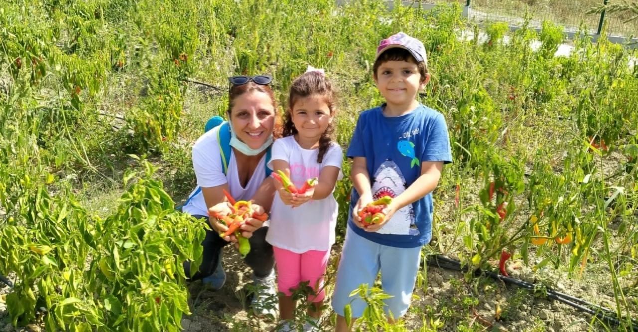 Yaşam Vadisi'nde 20 dönümlük alanda bulunan Yaşam Bahçesi'nde domates, biber, salatalık, kavun ve karpuz gibi meyve ve sebzeler tanıtılarak bilinçlenmeleri sağlandı.