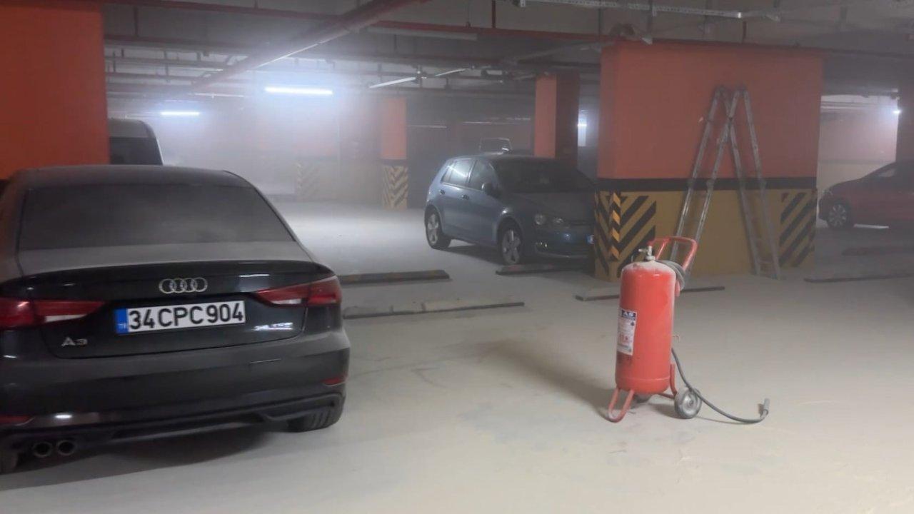 İstanbul Bayrampaşa'da katlı otoparka giren 4 çocuğun ikinci katta bulunan büyük yangın tüplerini alarak rastgele araçlara sıktıkları iddia edildi. Sıkılan yangın tüpleri nedeniyle araçların üzeri ve otopark beyaza büründü.