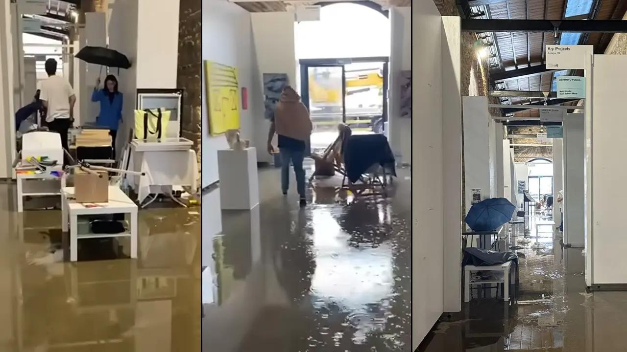 Tersane İstanbul'da sanatseverlerle buluşan Contemporary İstanbul'un fuar alanında su baskını yaşandı. Çatıdan akan sular nedeniyle bazı sanat eserlerinde hasar meydana geldi. Sanatseverler o anları sosyal medyadan yayınladı.