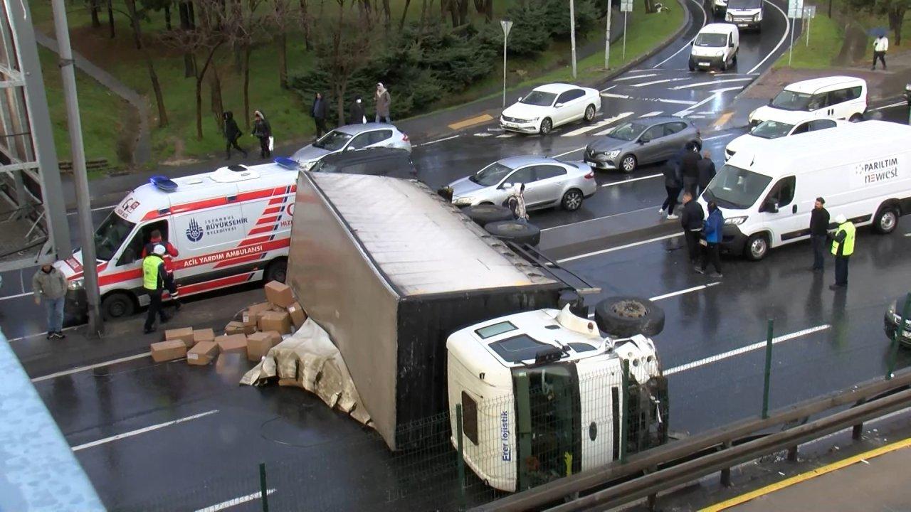 Kamyon şoförünün yaralandığı kaza nedeniyle Avcılar istikametinde trafik yoğunluğu oluştu. Trafik yoğunluğu kamyonun çekilmesinin ardından normale döndü.