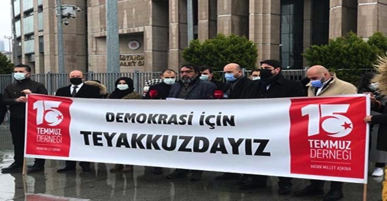Suç duyurunda bulunmadan önce adliyenin önünde açıklama yapan 15 Temmuz Derneği Yönetim Kurulu Üyesi Ahmet Yenilmez, "Önceki gece bildiğiniz gibi 104 emekli Amiral Montrö Sözleşmesi bahanesiyle bir bildiri kaleme alıp yayınladı. Bu bildiride pek çok sayıklama ve hezeyanın ardından 'aksi halde, Türkiye Cumhuriyeti, tarihte örnekleri olan, bunalımlı ve bekası için en tehlikeli olayları yaşama risk ve tehdidi ile karşılaşabilecektir. 27 Mayıs'ta, 12 Mart'ta, 12 Eylül'de, 28 Şubat'ta, 27 Nisan'da ve son olarak 15 Temmuz'da darbecilerin kullandığı sözleri hatırlatan bu tehdit dilini şiddetle kınıyoruz. 15 Temmuz gecesi canını hiçe sayarak işgal girişimini engelleyen 251 şehidimizin aziz hatıraları, 2 bin 700'den fazla gazimizin görülmemiş cesareti, milletimizin basireti ve feraseti dün gibi aklımızdayken, bir gece yarısı böyle bir bildiri yayınlama cüretini gösteren emekli amirallere şunu söylüyoruz: Darbe hevesleriniz artık bu ülkede miadını doldurdu. Bu millet bir daha ne sizin ne de vesayet odaklarının bildirilerine papuç bırakmaz" dedi.