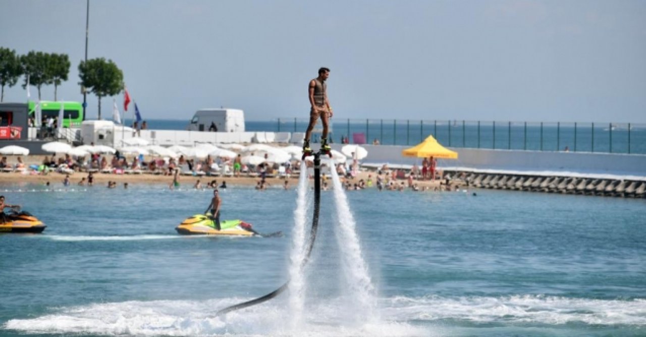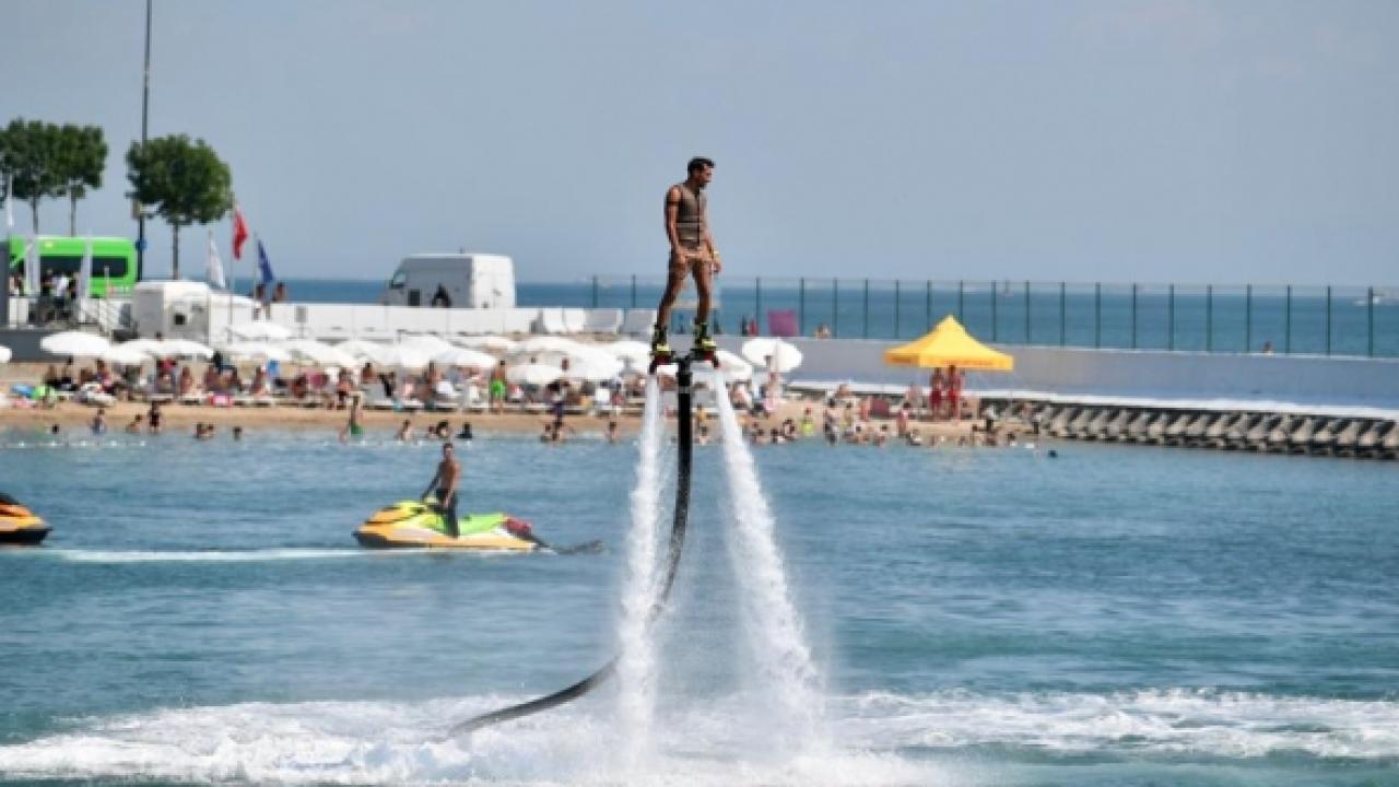 İBB İtfaiyesinin ardından Marmara’nın serin sularında sahneye bir dünya rekortmeni, Kahraman Aktaş çıktı. Backflip branşında rakip tanımayan Aktaş’ın şovu, nefesler tutularak izlendi. Rekortmen sporcu, havada sergilediği salvolar ve estetik manevralarla adeta yer çekimine meydan okudu. Şampiyon, gösterileri izlemeye gelen İBB Başkanı Ekrem İmamoğlu’nu, kendisine Türk Bayrağı vererek karşıladı.