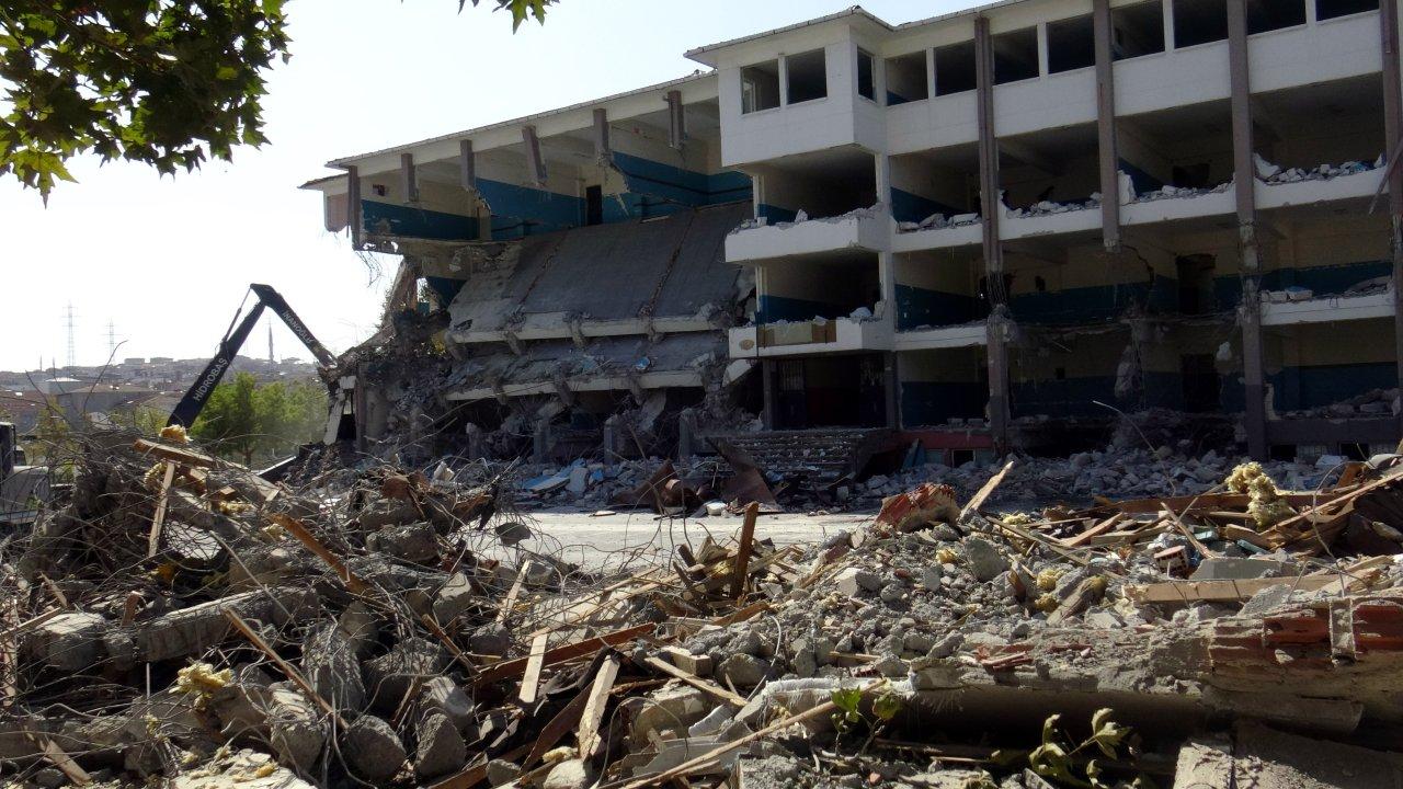 Avcılar'da olası bir depreme karşı dayanıksız olduğu belirlenen ortaokul, yenisi inşaa edilmek üzere yıkıldı.