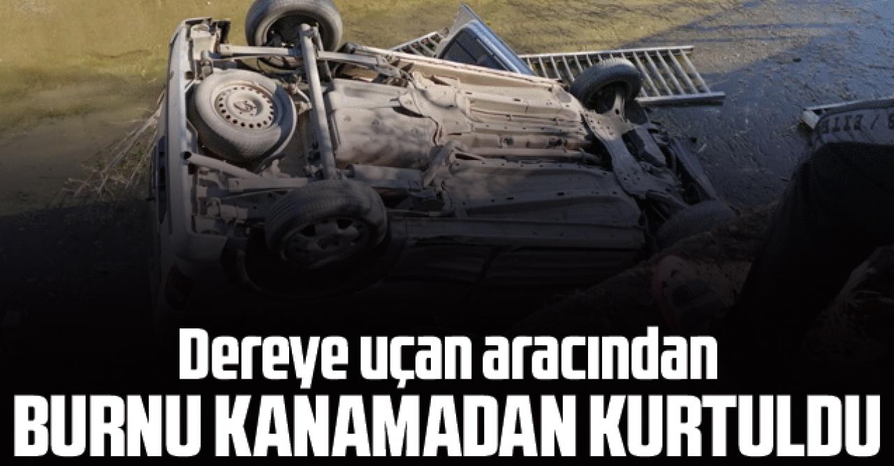 Çarpışmanın ardından direksiyon hakimiyetini kaybeden Taşkın Çınar'ın kullandığı hafif ticari araç dereye uçtu. Kazayı her iki sürücü de yara almadan atlattı.