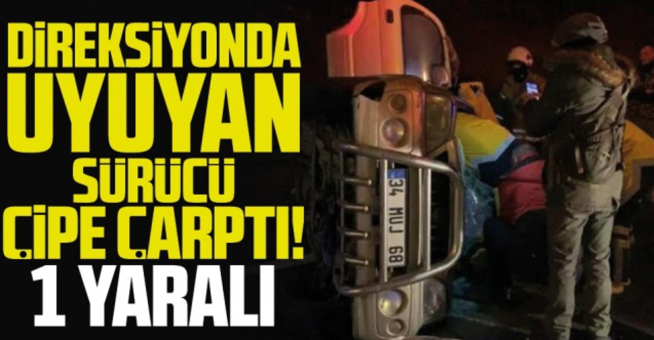 BEYKOZ TEM Otoyolu'nda sürücüsünün direksiyon başında uyuduğu otomobil kontrolden çıkarak cipe çarptı. Çarpmanın etkisiyle takla atan cipin sürücüsü aracında sıkışarak yaralandı.