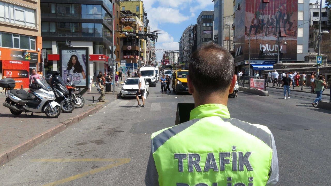 İstanbul Emniyet Müdürlüğü Trafik Denetleme Şube Müdürlüğü ekipleri ve sivil trafik polisleri, Kadıköy'de dron destekli denetim gerçekleştirdi. Denetimlerde 12 sürücüye, yaya geçidinde yayalara yol vermemek, kask takmamak, telefonla konuşmak maddelerinden toplamda 20 bin 519 lira para cezası kesildi. Sürücülerin ehliyetlerine 20 ceza puanı uygulandı.