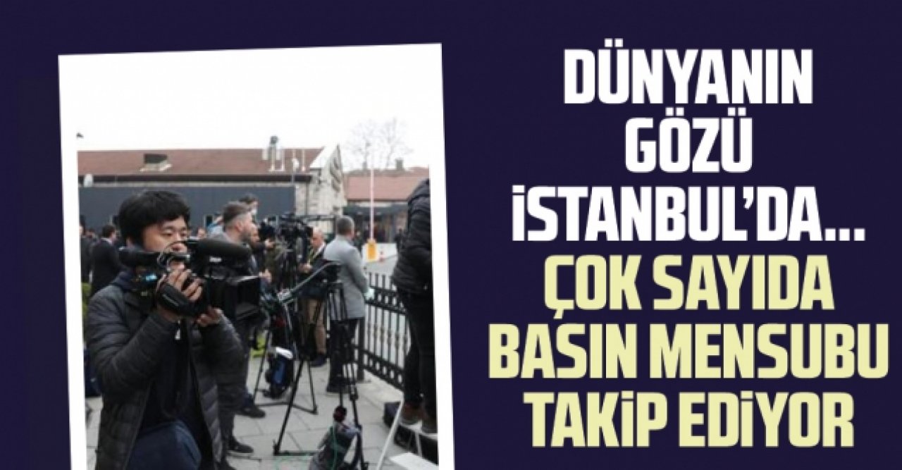 Dolmabahçe’deki Cumhurbaşkanlığı Çalışma Ofisi'nde gerçekleşen görüşmeleri çok sayıda yabancı gazeteci takip etmeye devam ediyor. Rusya ve Ukrayna müzakere heyetleri Cumhurbaşkanlığı Dolmabahçe Çalışma Ofisi'nde toplandı. Çevrede geniş güvenlik önlemleri alındı. Görüşmeleri çok sayıda yabancı gazetecinin de takip ettiği görüldü. (DHA)