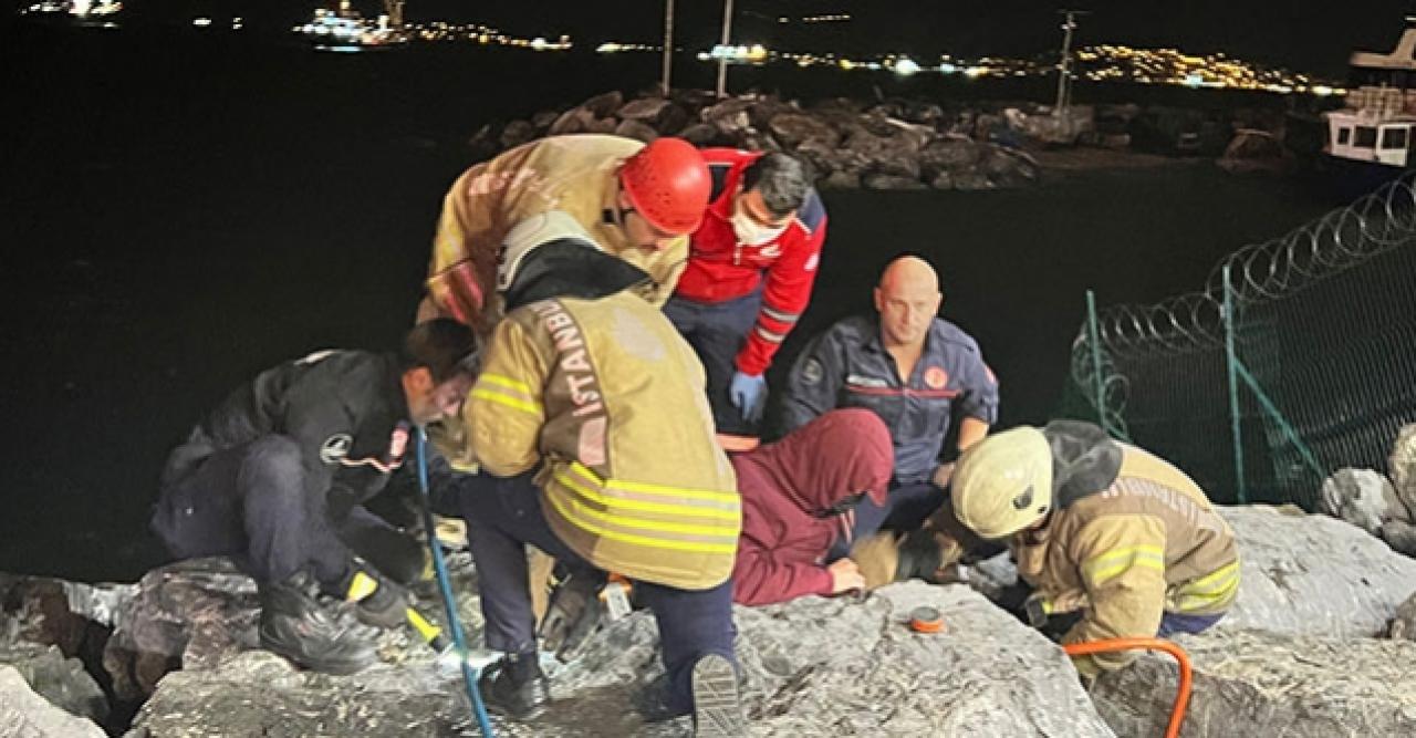 Kartal Sahili'nde düşen cep telefonunu almaya çalışırken kayalıklar arasına sıkışan kişi itfaiye ekiplerince kurtarıldı. Ekipler, cep telefonunu da düştüğü yerden aldı.