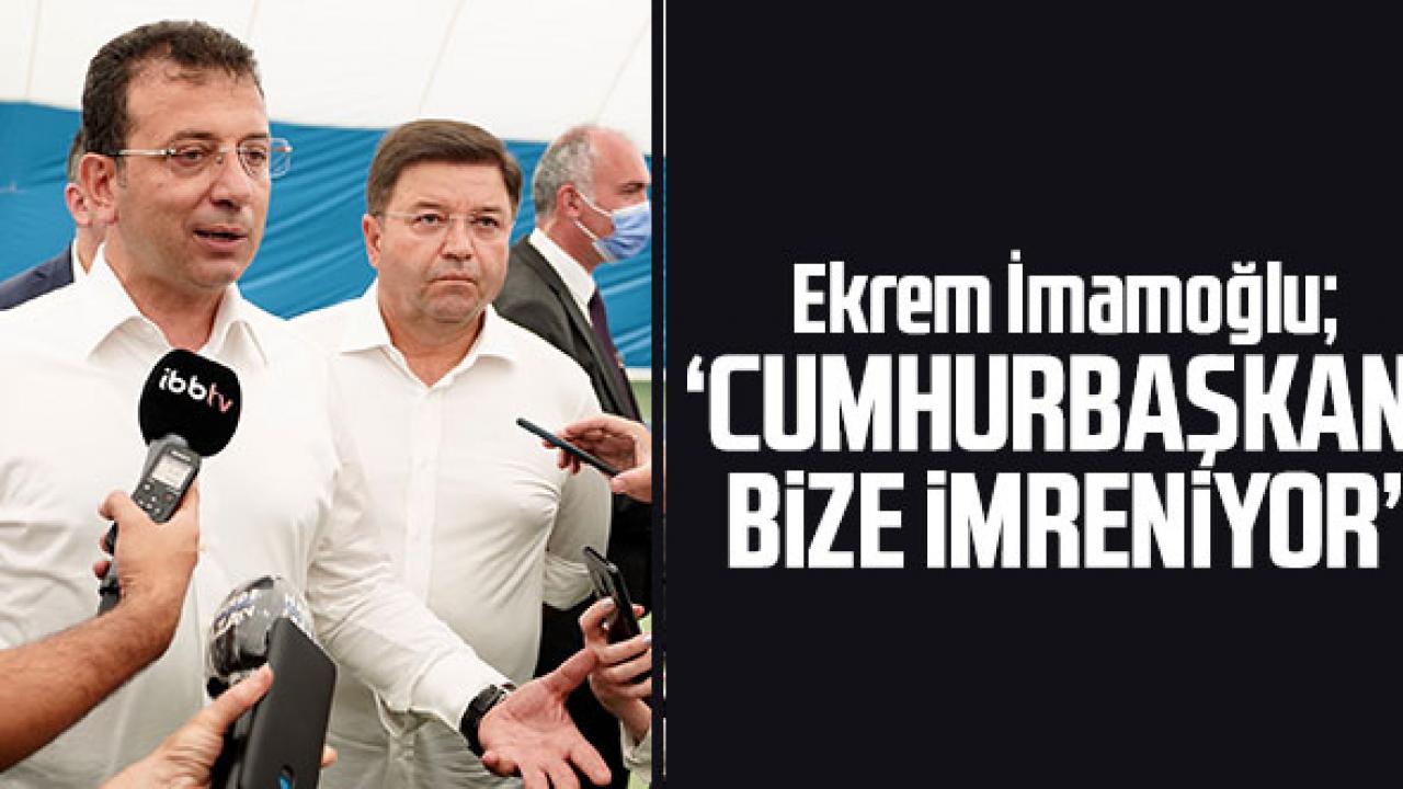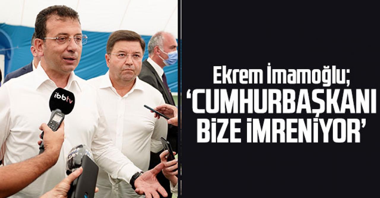 İmamoğlu, "Cumhurbaşkanı Erdoğan, Silahtarağa’da düzenlediğiniz temel atmama töreninizi baz alarak, Riva’dan, Küçükçekmece derelerinin kirliliğinden bahsederek, “Her yerinden basiretsizlik akan bir zihniyetin keyfine bu ülkeyi terk etmeyeceğiz” dedi. Bu konuyla ilgili değerlendirmenizi alabilir miyiz?" sorusuna da "Az önce de söyledim; imreniyor, gıpta ediyor. Bizi, iyi takip ediyor. Bundan mutlu oluyorum. Açıkçası bu mutluluğundan herhalde bazen ne söyleyeceklerini şaşırıyorlar. Yanlış bilgiler de var; uyaralım. Davet ediyorum; gelsin, gezelim. Yaptıklarımızı gösterelim, yapacaklarımızı burada anlatalım, yerinde gösterelim. Bize mutluluk verir. Ama yanlışlarını düzeltelim. Yani biz biyolojik arıtmaya ‘hayır’ dedik, ihaleyi iptal ettik falan değil. Biz, biyolojik arıtmanın yapılacağı yere, biçimine karşı geldik ve Silahtarağa’yı kurtardık. Eyüpsultanlılar, Kağıthaneliler; o güzelim Silahtarağa’da 250 bin metrekare, o kadar önemsenen Haliç kıyısında, binlerce ağacın yok olacağı projeyi oradan kaldırdık. Bunun gibi, örneğin yıllardır ihmal edilmiş Şile’yi biz temizliyoruz; yıllardır ihmal edilmiş Beykoz’dan Boğaz’a yapılan atıkları biz bağlıyoruz sisteme. Yüzlerce noktasında İstanbul’daki su baskınlarını biz ortadan kaldırıyoruz. Belki, geçmişteki arkadaşlarının yapamadıklarını, ihmal ettiklerini biz yapınca böyle bir psikolojiye bürünüyorlar. İnsan heyecanlanınca böyle tırnağını yiyerek gıptayla izler; biraz öyle izlendiğimi hissediyorum. Bundan da mutluluk duyuyorum. Dediğim gibi; davetimiz büyüktür. Buyursunlar, gelsinler" cevabını verdi.