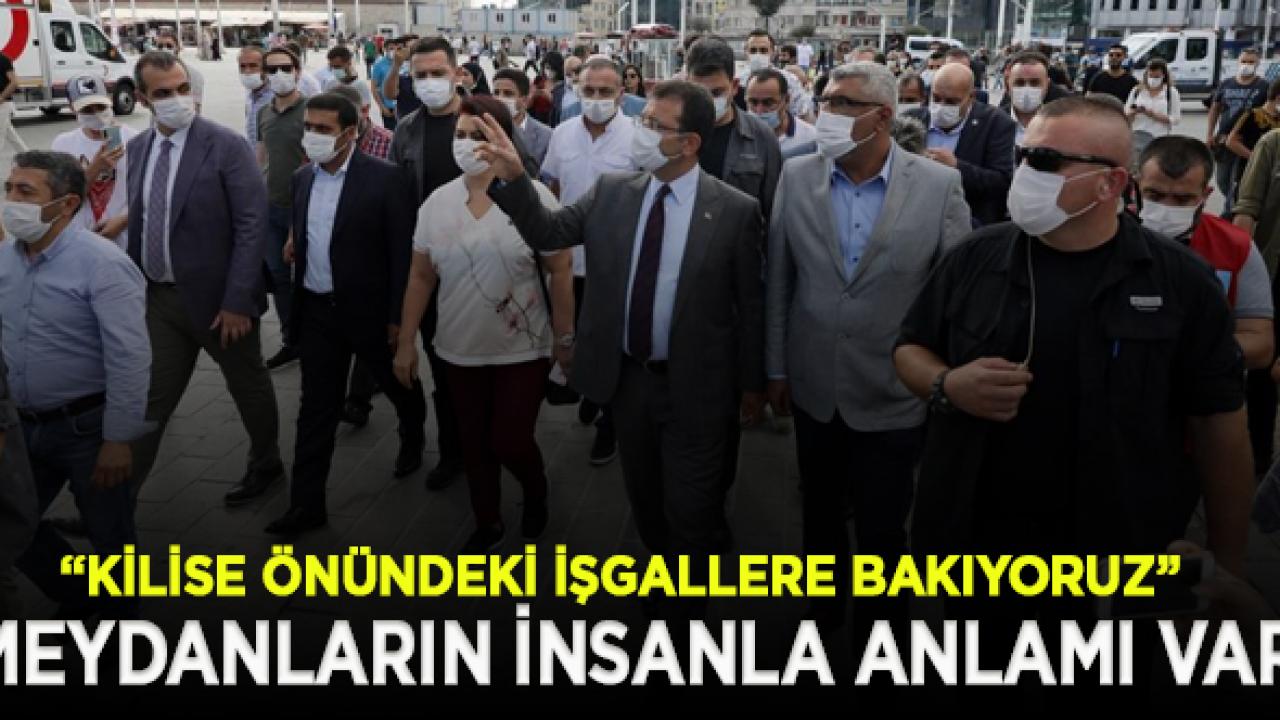 İmamoğlu, “İnşaatı bitmek üzere olan caminin karşısında kilise var. Arada da bazı yapılar var. O yapıların kaldırılması söz konusu mu” sorusunu, “Bunların hepsini sorgulayacağız. Burada ciddi bir temizliğe değişime ihtiyaç var. Çokça aykırı yapılar var. Yani burada yapılan caminin etrafı gayet derli, toplu. Orada yine bizim mülkiyetimizde olan bir sarnıç var ve o alanda, biz, yine bir takım sanatsal faaliyetleri öngörüyoruz tarihi dokusuna uygun şekilde. Karşısındaki kilise, şu anda neredeyse görünmez durumda. Oradaki işgallere bakıyoruz. Çünkü hem uygun olan yapılaşmalar var hem uygun olmayan yapılaşmalar var. Baktığınızda, oranın temizlenmiş ve tam da İstanbul’a yakışan, inançlar arası yakınlığın, münasebetin, bütün evrensel değerlere uygun bir ilişkinin hissettirildiği bir sürece dönüşmesini arzu ediyoruz. Orası da ilgi alanımız içinde. İnşallah, hemen yarışma sonrası o tür noktalara da burada değineceğiz” şeklinde yanıtladı.