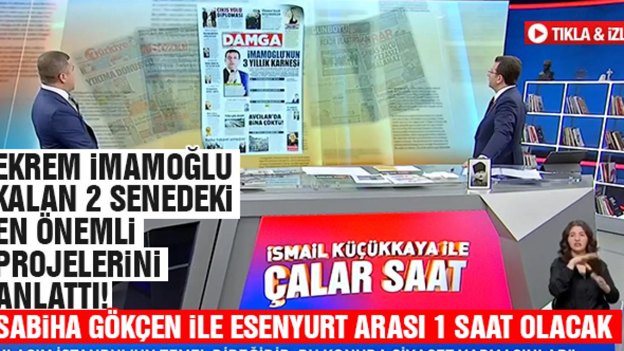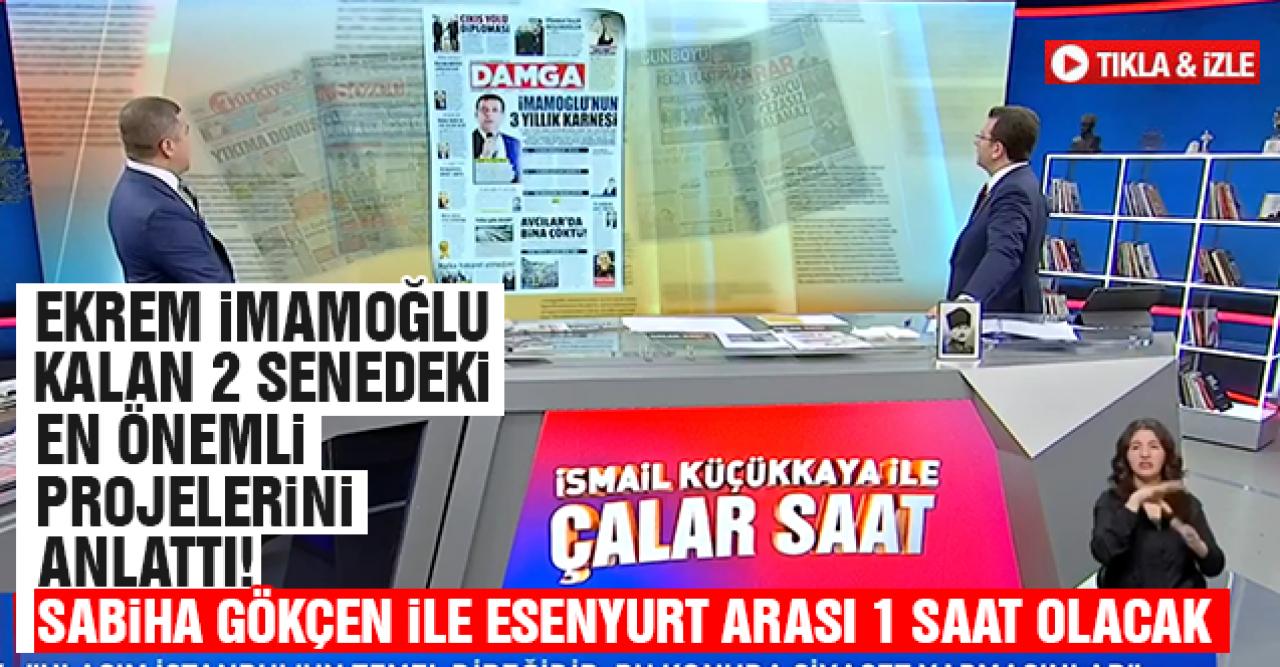 İstanbul Büyükşehir Belediye Başkanı Ekrem İmamoğlu bu sabah FOX TV'de İsmail Küçükkaya ile Çalar Saat programının konuğu oldu. İmamoğlu, Küçükkaya'nın kalan 2 senedeki en önemli işinin ne olduğu sorusuna metro inşaatları ve HIZRAY cevabını verdi.