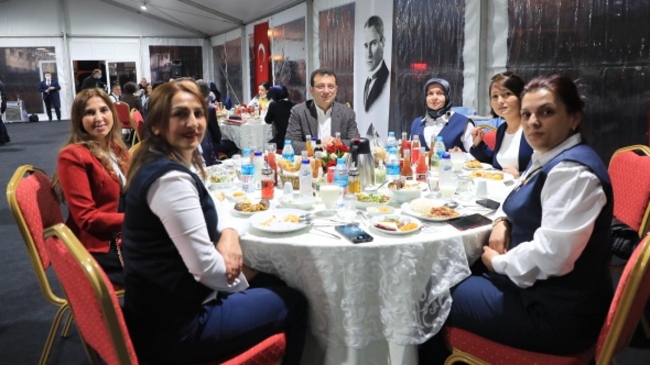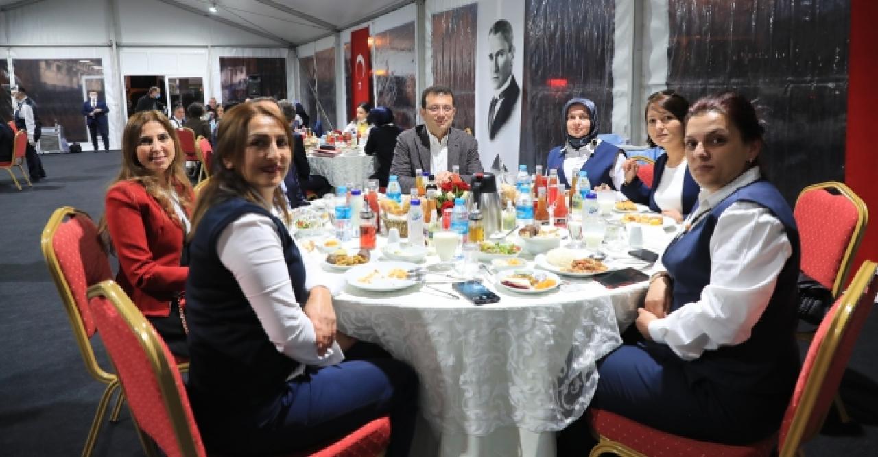 İBB’nin 83 binin biraz üzerinde çalışan sayısına sahip olduğu bilgisini paylaşan İmamoğlu, “Demek ki, bunu aileleri ile çarpsak, 500 bin insanın ekmek yediği bir kurumuz desek yanlımayız. Bu aynı zamanda 16 milyon insana; misafirleriyle beraber, turistiyle beraber anlık belki de ‘20 milyon insana hizmet eden bir kurumun bireyleriz’ dediğimizde, ne kadar gururlansak az. Yanı sıra, ‘Binlerce yıllık bir kentin daha iyi bir geleceğe yürümesini sağlamak da sorunlu kişileriz’ diye düşündüğümüzde sorumluluğumuz bir kat daha artıyor. Onun için hepiniz işinde de başarılar diliyorum. Kadın yönetici sayımızın, kadın çalışan sayımızın artmasını diliyorum. Buna da özen gösteren bir belediye başkanınızın olduğunu unutmayın. Her zaman yan yanayız. Sizler, bugün, simgesel olarak bu sofradasınız; ama sizinle iftarımı açarken, inanın ki sanki 83 bin çalışanımla iftar açıyormuşçasına kendimi hem güçlü hem kararlı, aynı zamanda gururlu hissedeceğim. İyi ki varsınız” ifadelerini kullandı.