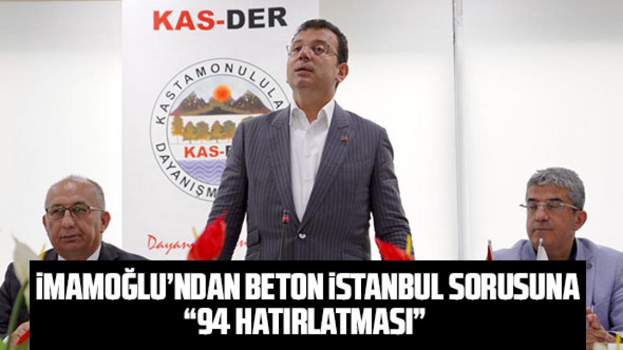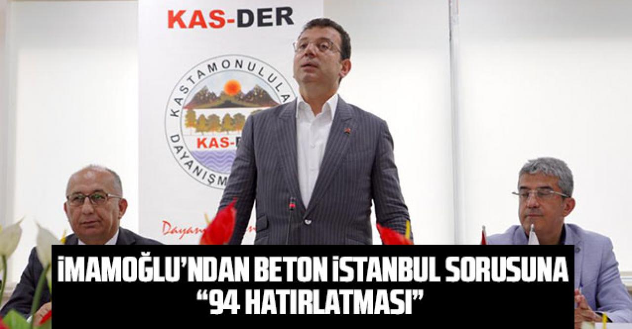 KAS-DER üyeleri, konuşmasının ardından İmamoğlu’na birbirinden farklı konularda sorular yöneltti. Sorulardan biri, “Beton Kanal”la ilgili oldu. İmamoğlu’na, “Kanal İstanbul güzergahındaki evlerimiz ne olacak” sorusu yöneltildi. Beton Kanal’ın bilimsel tarafını konuşan ve konuşturan bir kişi olduğunu belirten İmamoğlu, “Tek bir şeyi sorgulasın vatandaşımız: Mevcut iktidar, Kanal İstanbul’la ilgili, 10 senedir, İstanbul’da bir toplantı yaptı mı? Bir çalıştay yaptı mı? Teknik insanları davet edip, kamuoyuna bir açıklama yaptı mı? İBB Başkanı olarak, defalarca, ‘Bizi davet edin, anlatın’ dedik. Kimden, neyi kaçırıyorsunuz? İstanbul, doldu. ‘İstanbul’un kuzeyine dokundurtmam’ diyerek Belediye Başkanı olan Sayın Cumhurbaşkanımız, şimdi niye kuzeyi yok etme çabasında; ben anlayabilmiş değilim. 94 yılındaki söylemlerine bakın” şeklinde konuştu.