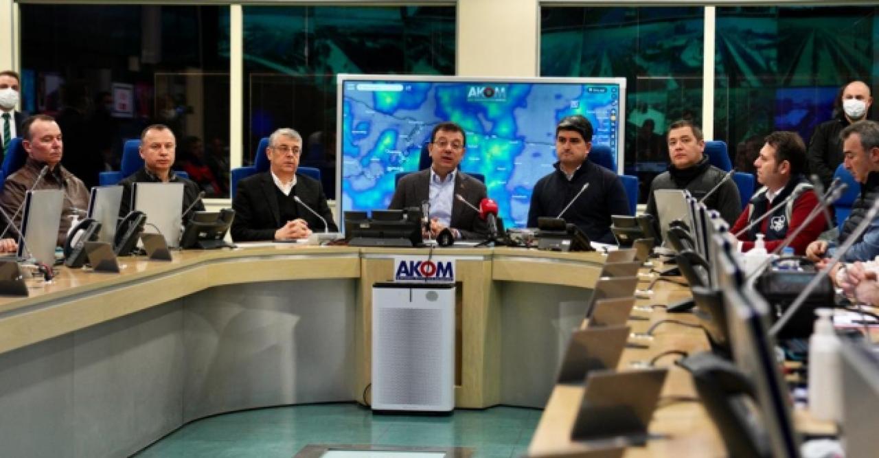 İstanbul Büyükşehir Belediye (İBB) Başkanı Ekrem İmamoğlu, son yılların en soğuk ve yağışlı mart ayını yaşamamıza neden olan kar yağışıyla ilgili kamuoyu bilgilendirmelerine devam etti. CHP Genel Başkan Yardımcısı Onursal Adıgüzel ile birlikte kameraların karşısına geçen İmamoğlu, Afet Koordinasyon Merkezi’nden (AKOM) vatandaşlara seslendi.
