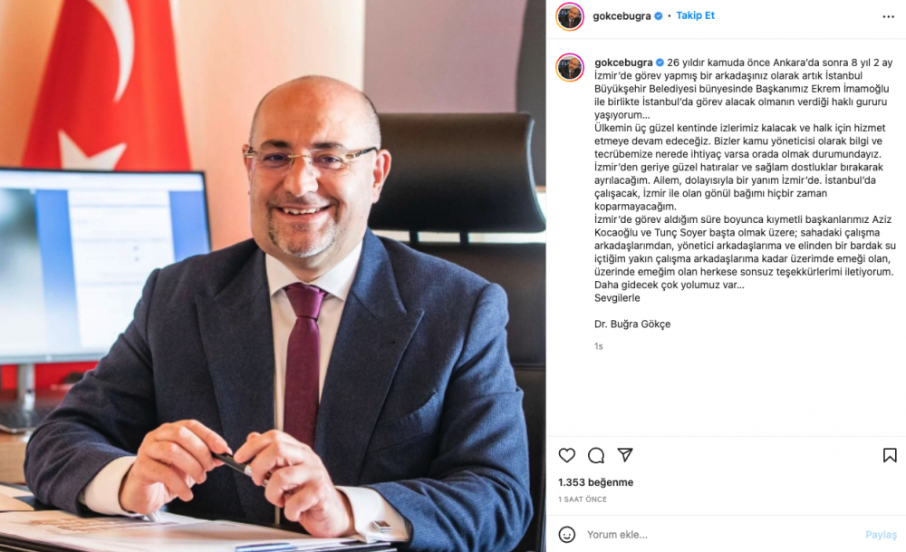 Sosyal medya hesabından yaptığı paylaşımda, 26 yıldır kamu görevinde bulunduğunu, Ankara ve İzmir gibi iki büyük şehirde çok önemli deneyimler kazandığını ifade eden Gökçe, şu ifadeleri kullandı: