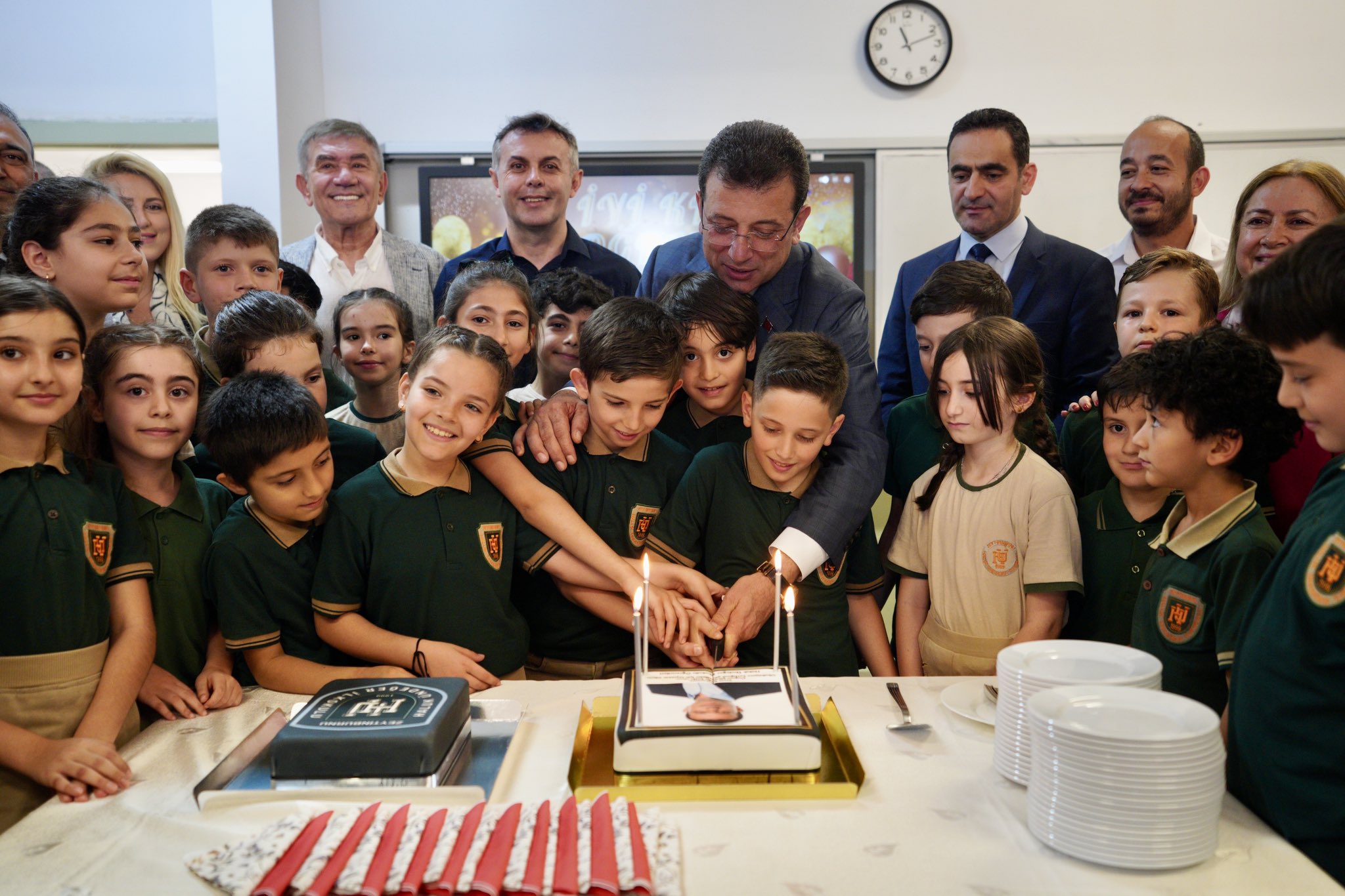 Ekrem İmamoğlu okuldaki ziyareti sırasında 23 Nisan'da koltuğunu devrettiği Ali Selim Metni'den doğum günü hediyesini aldı. Miniklerle birlikte Ekrem İmamoğlu doğum günü pastasını kesti.