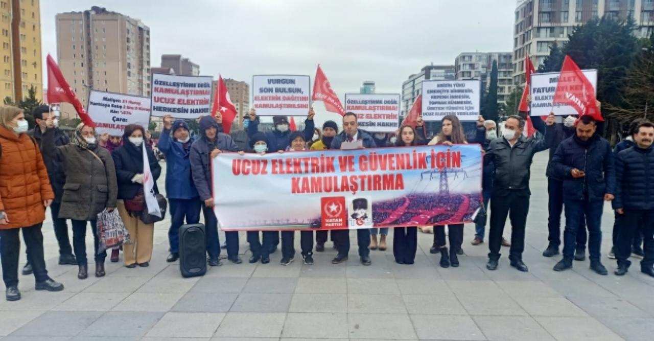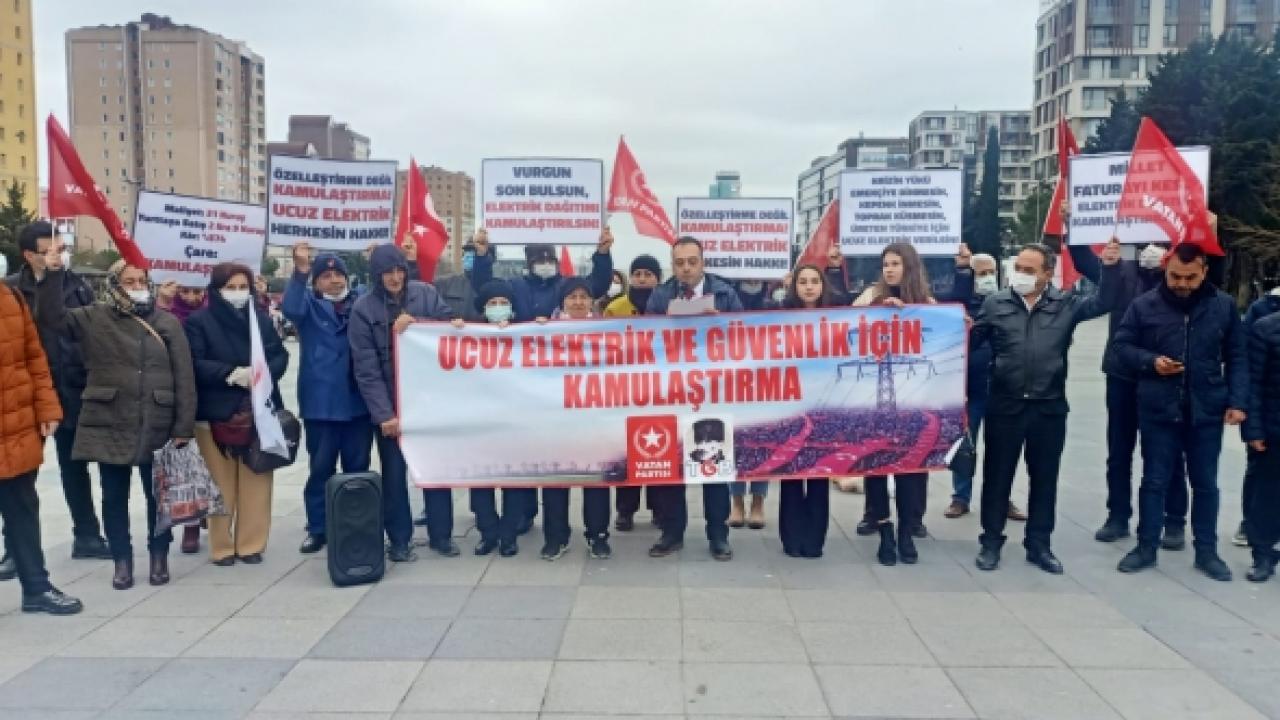 Vatan Partisi Beylikdüzü İlçe Örgütü, Beylikdüzü Metrobüs Meydanı'nda elektrik faturalarını protesto etti. İlçe Başkanı Cankut Aydoğdu'nun öncülük ettiği protestoya Vatan Partisi İstanbul İl Başkan Yardımcısı Dr. Barbaros Bahçelioğlu ve çok sayıda partili katıldı.Türkiye'nin büyük bir enerji krizi yaşadığını anlatan İlçe Başkanı Aydoğdu, “1 yıla yakın süredir Vatan Partisi olarak enerji krizi olduğunu söylüyoruz. Ülkemiz maalesef bu krizin altında eziliyor. Esnafımız, vatandaşımız perişan durumda. Esnaf, faturasını camlara asarak tepkisini dile getiriyor. Bu bir çığlıktır. Vatan Partisi olarak sadece tepki gösteren bir muhalefet anlayışımız olmadı. Aynı zamanda çözüm öneri sunuyoruz. Elektrik üretiminde özel sermayeye derhal son verilmeli. Elektrik sermayesi bildiğiniz gibi özelleştirildi ve biz bunun sonucunda eziliyoruz. Hükümet halkı değil özel şirketlerin çıkarlarını destekliyor. Devletimiz şu anda elektriği 2019'daki ücretin çeyreğinden daha ucuza özel şirketlere veriyor. Özel şirketler ise vatandaşa fahiş faturalar yolluyor. Özel şirketler 7 kat fiyat farkı koruyor. Bu kabul edilemez” ifadelerini kullandı.