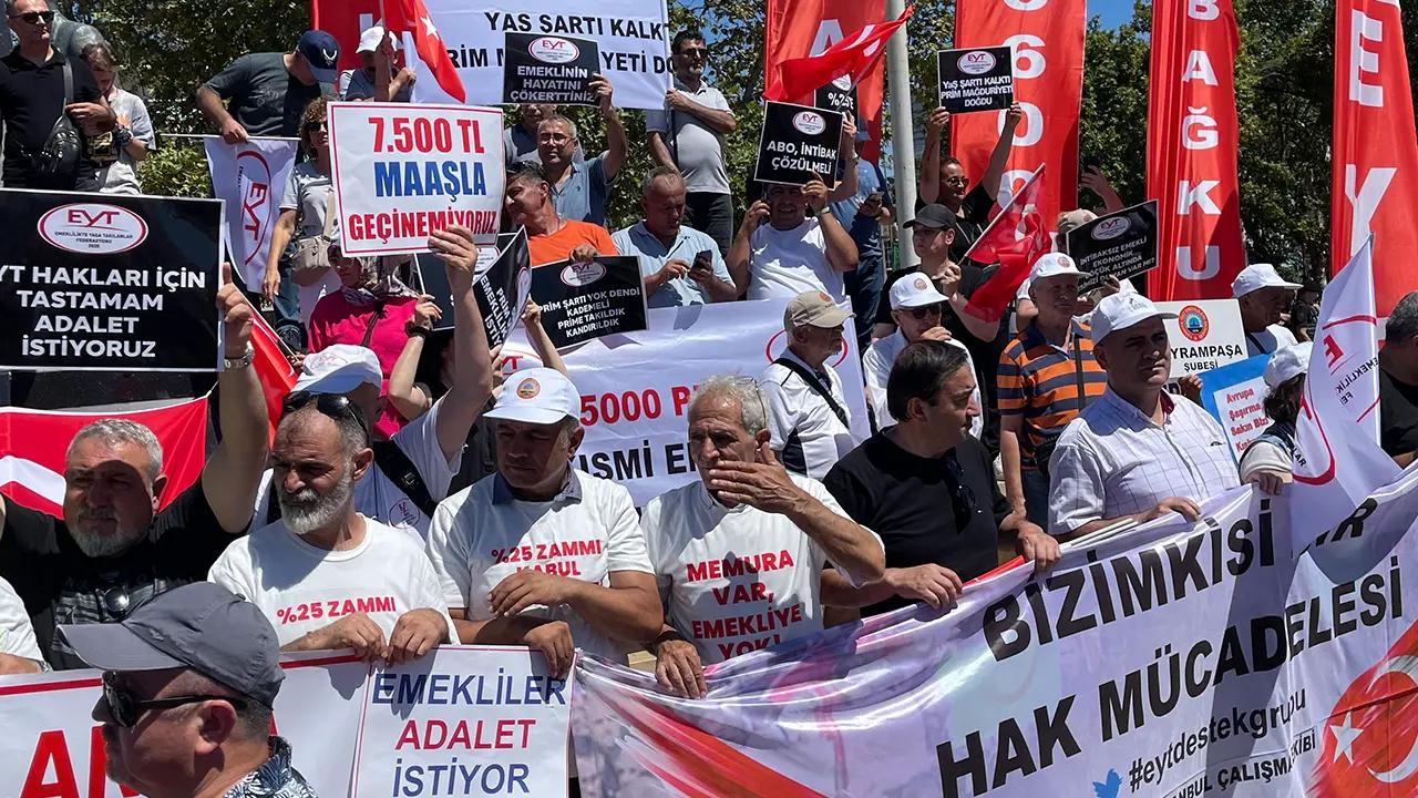Emeklilikte Yaşa Takılanlar Sosyal Yardımlaşma ve Dayanışma Derneği, düşük emekli maaşları ve artan hayat pahalılığını protesto etmek için bugün İstanbul Kadıköy’de buluştular. EYT düzenlemesinin yeni mağduriyetler yarattığını belirten binlerce vatandaş bu sorunun çözülmesi için hazırladıkları dövizlerle yeni düzenlene talep ettiler.