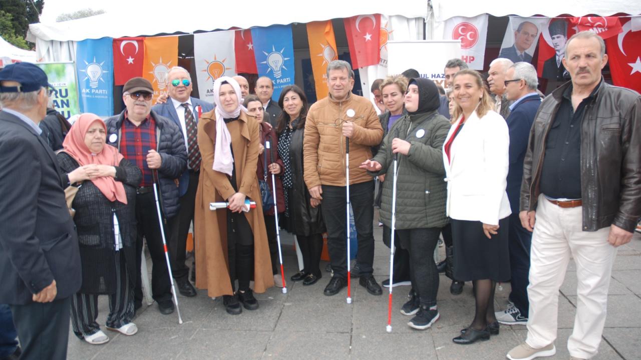 Görme Özürlüleri Derneği Bakırköy Özgürlük Meydanı'nda basın açıklaması yaptı. Meydanda seçim standı kuran tüm siyasi partilerin destek verdiği basın açıklamasını GÖZDER Gönüllüsü Özlem Gül okudu. Açıklamaya MHP Milletvekili Arzu Erdem ve MHP Fatih İlçe Başkanı Mehmet Celep de eşlik etti. Yapılan basın açıklamada, “Bilindiği üzere 10-16 Mayıs Türkiye dahil olmak üzere tüm dünyada engelliler haftası olarak kabul edilmekte ve çeşitli etkinliklerle engellilerin sorunları ve çözüm yolları ele alınmaktadır. Görme Özürlüler Derneği (GÖZDER) olarak yıllardır engelli hakları için çeşitli çalışmalar yürütüyor, görme engellilerin hayata eşit ve özgür katılımını önemsiyoruz. Ülkemizde yaklaşık 10 milyon engelli vatandaşımız yaşamaktadır. Erişilebilirlik, bağımsız yaşam, katılım gibi hakları güvence altına alan ulusal ve uluslararası mevzuatın uygulanması oldukça önem arz etmektedir. Hep sesimizi duyurmaya, derdimizi anlatmaya, sorunlarımıza çözüm bulmaya çabalıyoruz” ifadelerine yer verildi.