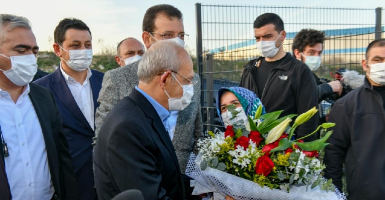 Cumhurbaşkanı ve AK Parti Genel Başkanı Erdoğan, Ayasofya Cami çıkışında CHP’ye Fikri Sağlar’ın açıklamaları üzerinden yüklenirken “Oy almak için bazı yerlerde görüyorsunuz, başörtülü birkaç kişiyi de yanlarında adeta böyle vitrin mankeni gibi getirip koymak kimseyi artık aldatmıyor. Geçti o işler" ifadelerini kullanmıştı. Bugün ise hem Beylikdüzü hem de Esenyurt'ta bir takım incelemelerde bulunan Kılıçdaroğlu'na bu esnada üç dönemdir kadın kolları başkanlığı ve aynı zamanda belediye meclis üyeliği de yapan CHP'li Emine Polat tarafından çiçek takdim edildi. Erdoğan'ın bu fotoğraf sonrasında aynı ifadeleri kullanıp kullanmayacağı merak konusu oldu.