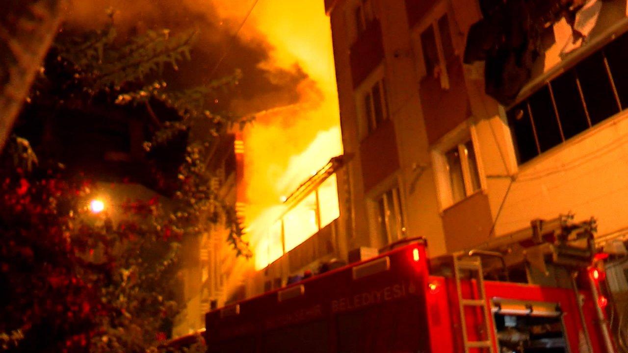 Esenler'de 2 katlı binanın çatısında çıkan yangın rüzgarın da etkisiyle kısa sürede büyüdü. Bitişiğindeki 2 binaya daha sıçrayan alevler itfaiye ekiplerinin müdahalesi sonucu söndürüldü.