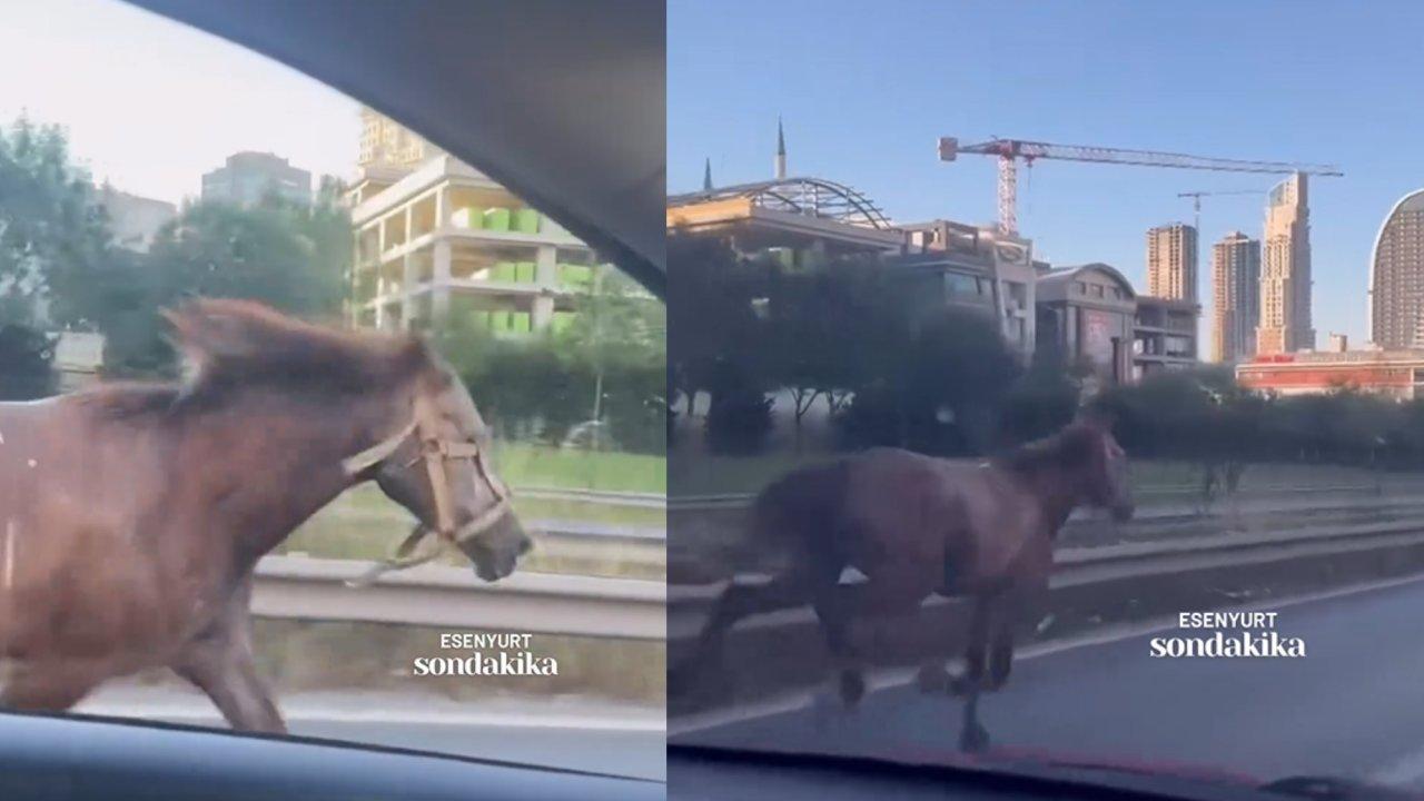 Esenyurt/Haramidere E-5 bağlantı yolunun sol şeridinde ilerleyen başıboş bir at görüntülendi. Durumu gören sürücüler büyük şaşkınlık yaşadı. Bir yerden kaçtığı tahmin edilen at koşarak ilerlerken, olası kazaya karşı sürücüler hızlarını düşürerek seyretti. O anlar bir sürücünün cep telefonu kamerasına yansıdı.