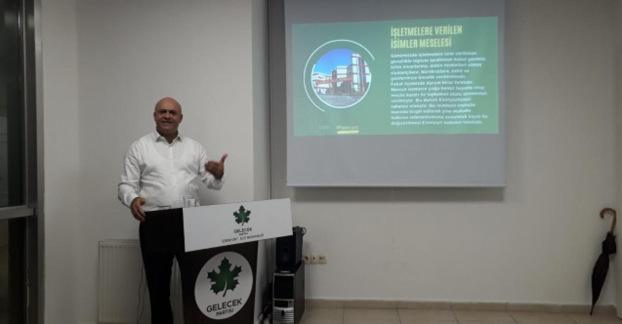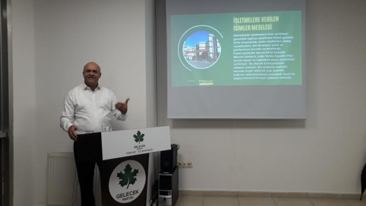 Gelecek Partisi Esenyurt İlçe Başkanlığı binasında gerçekleşen toplantıda Veysel Karatay, Esenyurt ilçesinin sorunlarına değindi. Yerel yönetimlerin amacının vatandaşa kaliteli ve hızlı hizmet sunmak olduğnu belirten Karatay, “Bilindiği üzere hizlet binamız çok katlı olduğu için vatandaşlarımız birimlere ulaşırken zorluk çekmektedir. Bina girişinden asansörlere ve otoparkına kadar rahat bir şekilde ulaşılabilir bir bina değildir. Bir milyon nüfuslu ilçemizde yaşayan hasta, yaşlı ve engelli vatandaşlarımız daha hızlı ve rahat hizmet alabilecekleri bir bina talep etmektedir. Yoğun birimlerin daha rahat ulaşılabilecek yeni bir hizmet binasına alınması da geçici bir çözüm olacaktır. Eski belediye binasının bu anlamda kullanılması düşünülmelidir” diye konuştu.