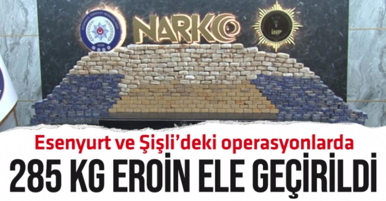 İstanbul Emniyet Müdürlüğü Narkotik Suçlarla Mücadele Şube Müdürlüğü görevlileri, 23 Ekim Cumartesi günü Esenyurt ve Şişli'de uyuşturucu organizasyonlarında faaliyet gösterdiği tespit edilen araç ve adreslere yönelik operasyon düzenledi. Adreslere düzenlenen operasyonlarda 3 şüpheli gözaltına alındı. Esenyurt'taki adrese yapılan aramalarda 48 kilo 500 gram eroin, Şişli'de depoda yapılan aramalarda ise 236 kilo 500 gram eroin ele geçirildi. Operasyon anları kameralara yansırken, ele geçirilen 285 kilo eroin İstanbul Emniyet Müdürlüğü Vatan Yerleşkesi'nde sergilendi. Gözaltına alınan 3 şüpheli emniyetteki işlemlerinin ardından sevk edildiği adli makamlarca tutuklanarak cezaevine gönderildi.