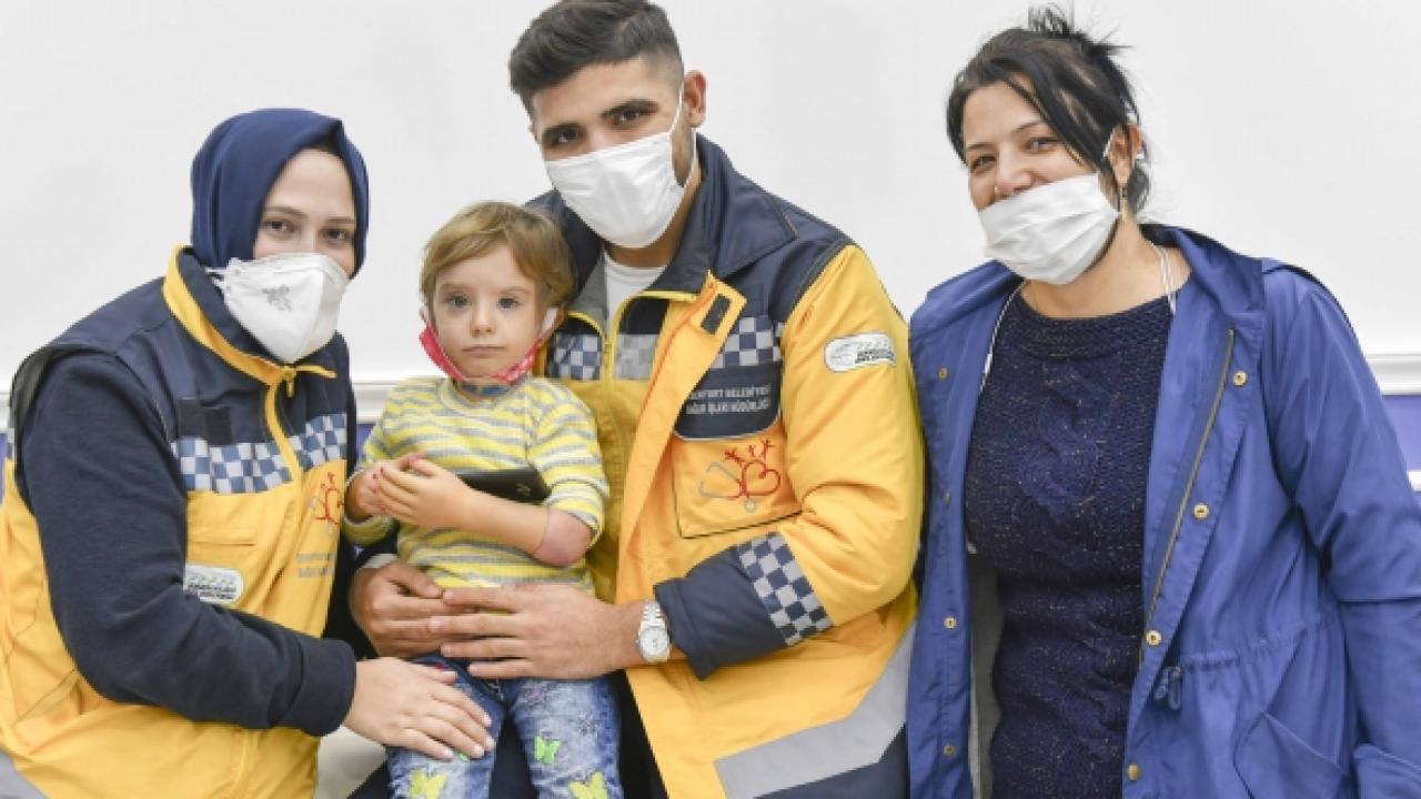 2.5 yaşındaki Rabia Pazarlıoğlu anne karnındayken kordon bağı koluna dolandı. Doktorların ‘çocuğu aldır’ demesine rağmen doğum yapan anne Selda Pazarlıoğlu, kızının adeta kolu oldu. 2 yaşına gelen Rabia, kolunun eksikliğini hissedip üzülüp ağlamaya başlayınca anne Rabia, Esenyurt Belediyesi’ne başvurdu. Sağlık İşleri Müdürlüğü uzman personeli tarafından muayene edilen küçük Rabia’ya sol üst ekstremik teşhisi konuldu. Sol kolunun yüzde 56 engelli olduğu tespit edilen Rabia’ya protez kol hazırlandı. Hazırlanan protez kol, dün takıldı. Dirsekten aşağı takılan protezle ilk deneme yapıldı. Annesine sarılan Rabia’nın bazı nesnelerle yapılan ilk kontrollerde kolunu başarıyla kullanabildiği görüldü.