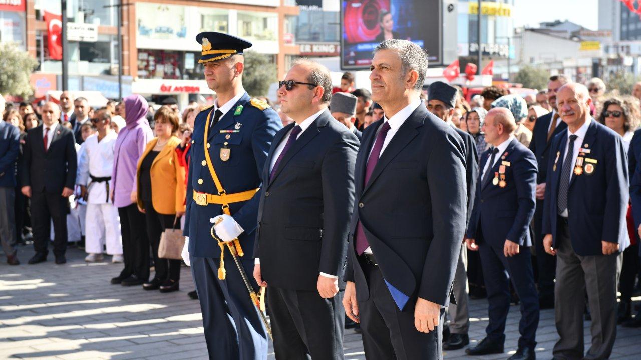 Önceki yıllara nazaran daha yoğun bir kalabalığın katıldığı törende, Cumhuriyetimizin kurucusu Atatürk ve silah arkadaşları, saygı ve minnetle anıldı.