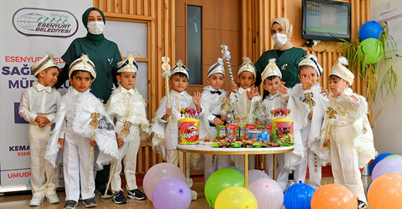 Esenyurt Belediyesi Sağlık İşleri Müdürlüğü, ilçede maddi imkânı bulunmayan, 3-14 yaş arası çocukları modern cerrahi yöntemlerle, ücretsiz olarak sünnet ettiriyor. Bin 800 çocuğun kayıt yaptırdığı sünnet ameliyatı, özel hastanede steril ortamda yapılmaya devam ediyor. Toplu sünnet programına katılan Belediye Başkan Yardımcısı Halis Şimşek de ailelerle görüşerek hayırlı olsun dileklerinde bulundu. Çocukların sağlıklı bir şekilde sünnet ameliyatı olmasını sağlayan Esenyurt Belediyesi, hastanede çocuklara kek, meyve suyu ve şeker ikram etti.