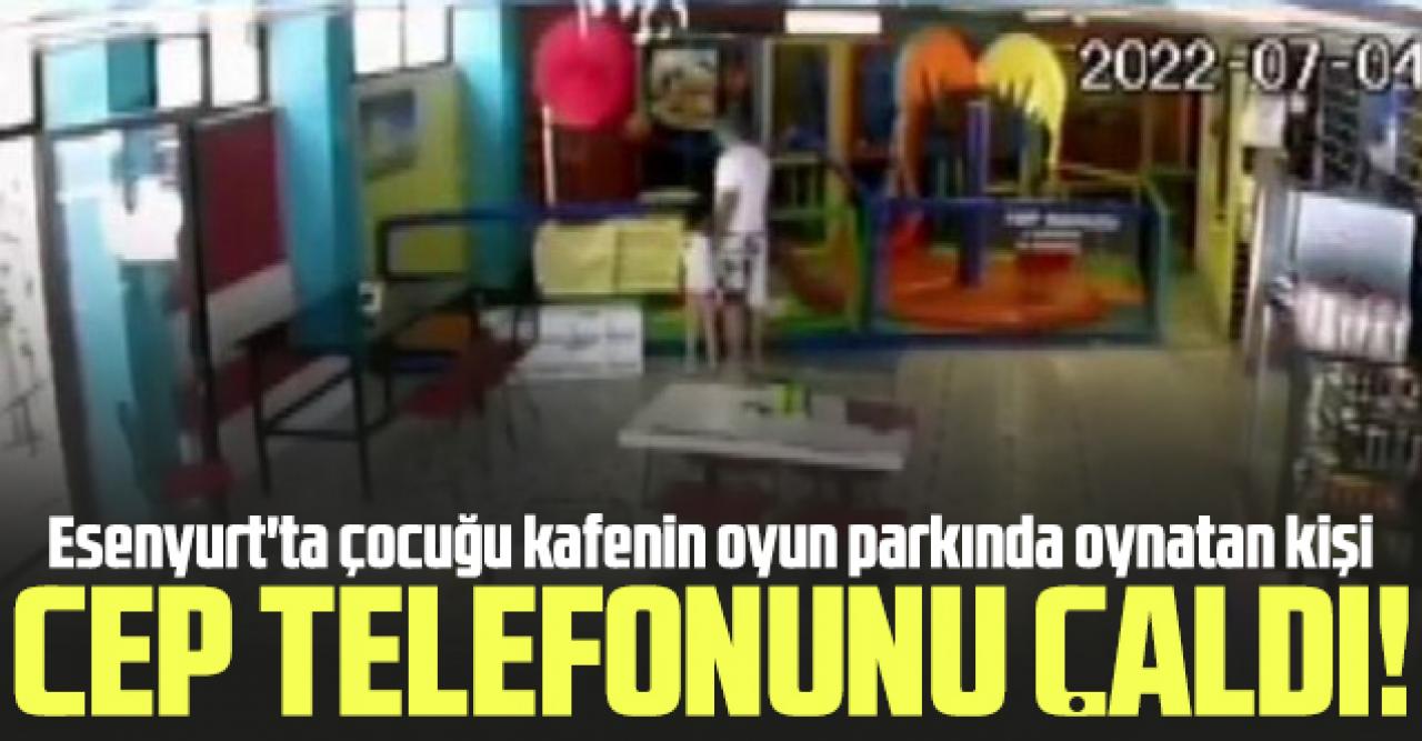 Olay, 4 Temmuz Pazar günü öğle saatlerinde Esenyurt İstiklal Mahallesi'nde bulunan kafede yaşandı. Kafeye müşteri olarak gelen bir kişi, çocuğunu oyun parkına bıraktı. Daha sonra hesabı ödeyen bu kişi, kasiyerin dışarıdaki müşterilerle ilgilenmesinden yararlanarak, tezgah üzerindeki cep telefonunu çaldı. Çocuğunu da alan şüpheli, olay yerinden uzaklaştı. Geri döndüğünde cep telefonunu bulamayan kadın, iş yerinin güvenlik kameralarını inceledi. Hırsızın, çocuğunu oynatmak için gelen müşteri olduğunu gören çalışan, şikayetçi oldu. Hırsızlık anları ise iş yerinin güvenlik kamerasına yansıdı.