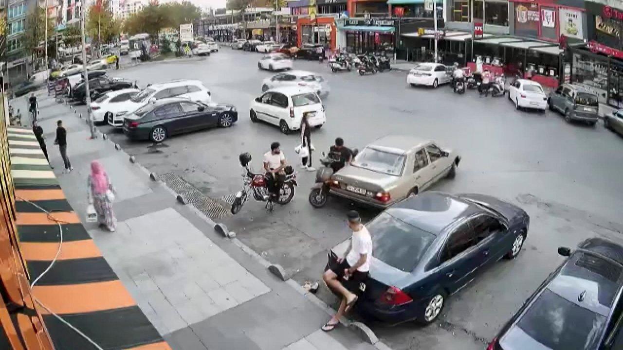 Olay, geçtiğimiz günlerde Cumhuriyet Mahallesi'nde meydana geldi. İddiaya göre restorana gelen müşteri, otomobilini park etmek için geri manevra yaptığı sırada park yerinden çıkan motosikletliye çarptı. Kazanın ardından, motosiklet sürücüsüyle otomobil sürücüsü arasında tartışma çıktı. Otomobilinden inen sürücüyle motosikletli birbirine saldırdı. Bu sırada motosikletlinin aracı yere düştü. Çevredeki esnaf kavgaya karışan tarafları ayırdı. İhbar üzerine olay yerine polis ekipleri sevk edilirken, kavga anıyla polislerin olay yerine geldiği anlar, iş yerinin güvenlik kamerasına yansıdı. Kavga eden tarafların birbirinden şikayetçi olmadığı öğrenildi.