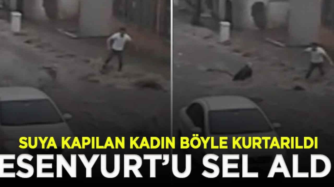 Esenyurt'ta sel baskını sırasında bir kadın suya kapıldı. Sürüklenen kadın çevredekiler tarafından kurtarıldı.