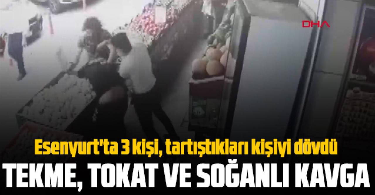 Esenyurt Bağlarçeşmesi'nde, yabancı uyruklu 2 kişi, bir marketin önünde tartışmaya başladı. Sözlü tartışma, kısa sürede kavgaya dönüştü. Çevredekilerin de katılmasıyla kavga büyüdü. 3 kişi, bir kişiyi aralarına alıp, yumruk ve tekmelerle dövdü. Saldırganlardan biri, eline aldığı soğanı dövülen adamın başına vurdu. Vatandaşların müdahalesiyle son bulan kavga, bir iş yerinin güvenlik kamerasına yansıdı. DHA