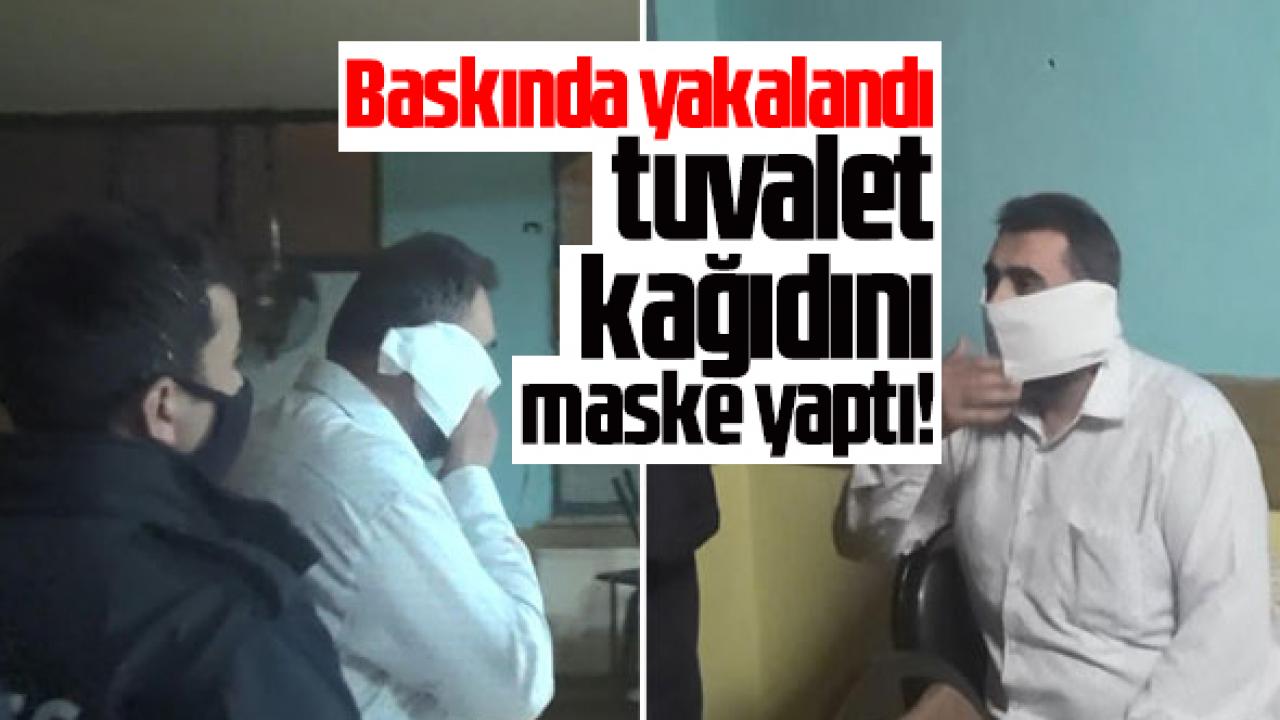 İstanbul Esenyurt'ta koronavirüs yasakları kapsamında kapalı olması gereken açılan kahvehaneye baskın düzenlendi. Bir kişi yakalanınca tuvalet kağıdını maske haline getirmeye çalışıp cezadan kurtulmayı denedi ama başarılı olamadı.