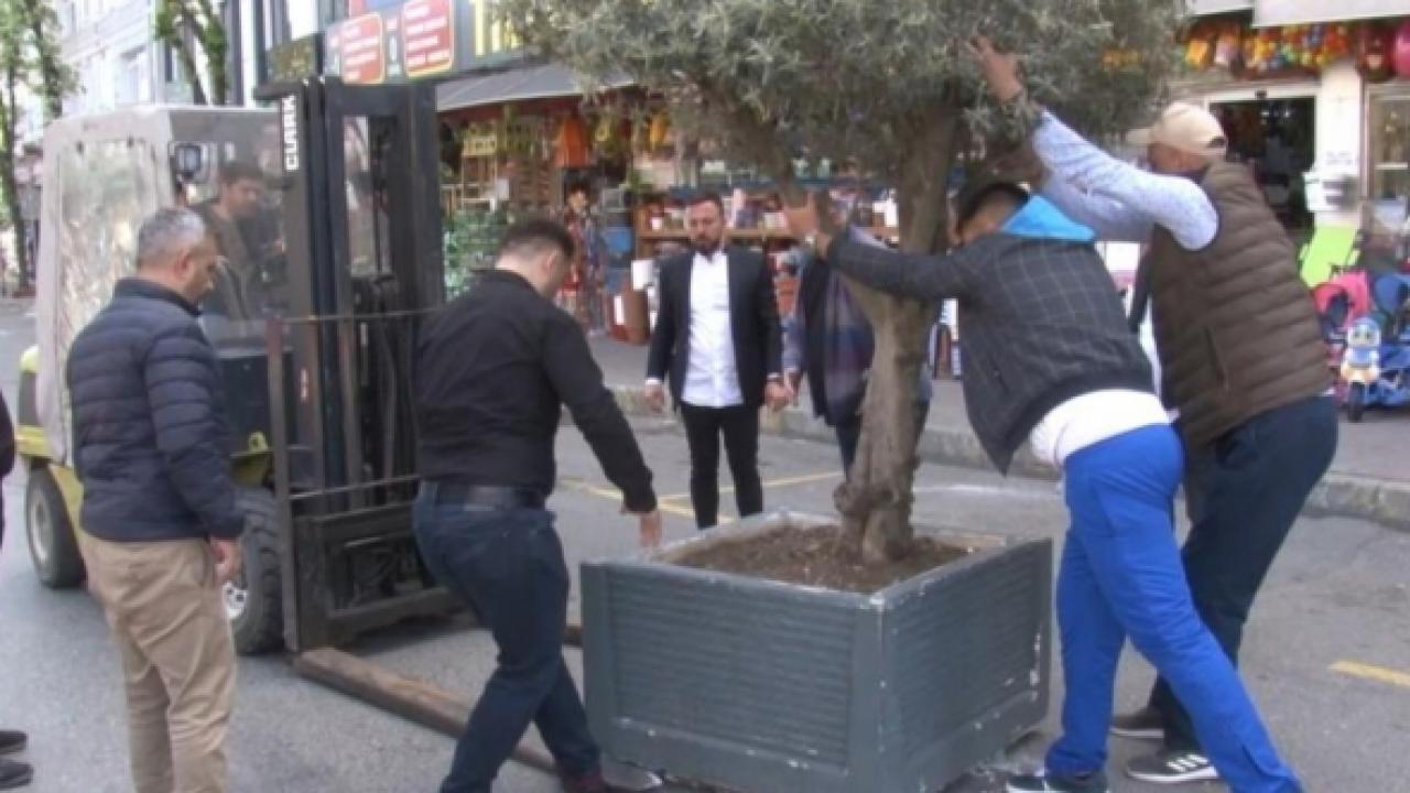 Ümraniye'de, İBB tarafından trafiğe kapatılarak yaya yolu yapılacağı söylenen alana İSPARK kuruldu. Çevre esnafıysa mağdur olduğunu belirterek İSPARK girişini, forklift makinasıyla taşıdığı saksılarla kapattı. İSPARK girişini kapatan esnaf eylem yaptı