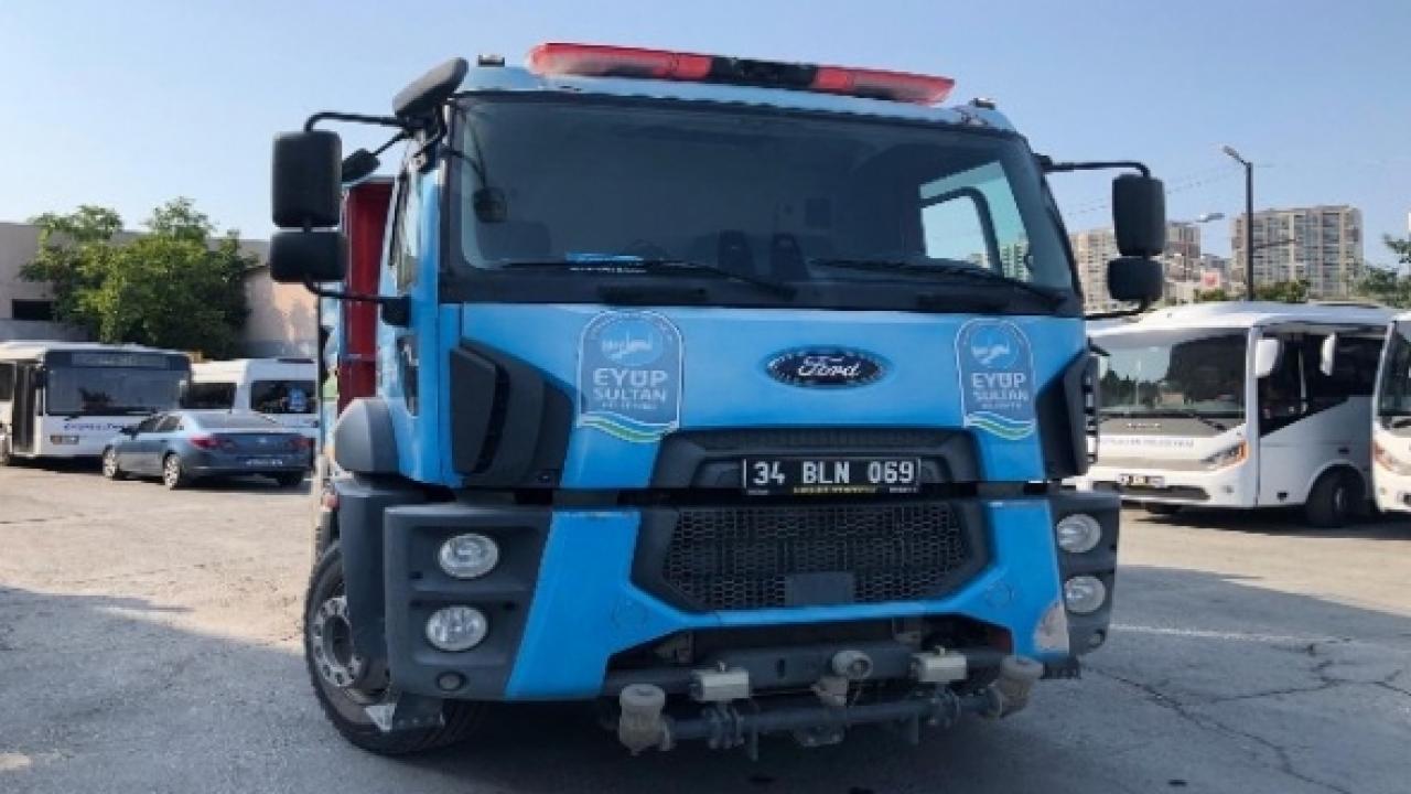 Eyüpsultan Belediyesi, orman yangınlarına müdahalede görev yapmak üzere, üzerinde tazyikli su sıkma sistemi bulunan su tankerini Antalya'ya gönderdi.