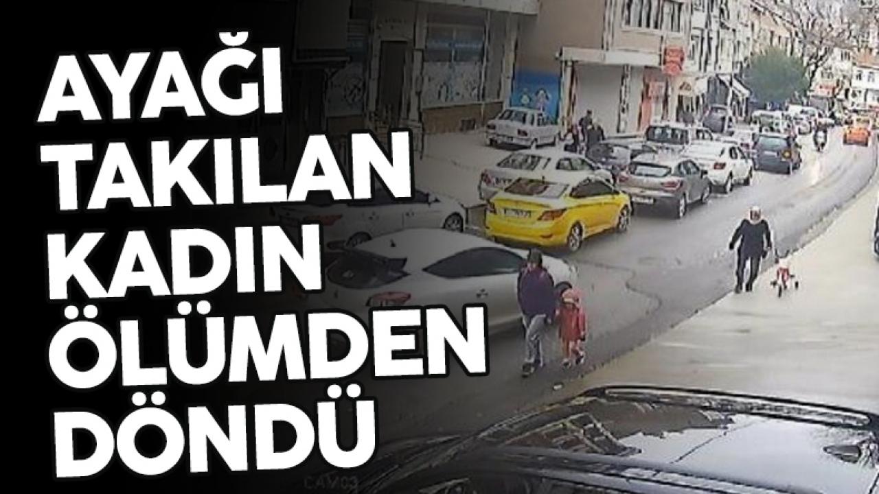 Kaza anı bir iş yerinin güvenlik kamerasına yansıdı. Görüntülerde, kadının elinde çocuk bisikleti ile kaldırımda yürüdüğü, ayağının takıldığı ve yola düşerek seyir halindeki minibüse çarptığı görülüyor. Çevredekilerin kadının yardımına koştuğu anlar da kameraya yansıyor.