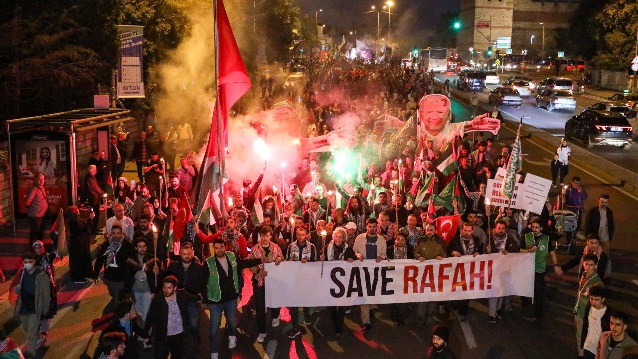 Gazze'deki İsrail saldırılarının bitmesi ve Filistin'in özgürlüğü için düzenlenen eylem, akşam namazının ardından Edirnekapı Mihrimah Sultan Cami'nin önünden başladı. Bir araya gelen binlerce katılımcı, kortej halinde Eyüpsultan Meydanı'na kadar yürüdü. Yürüyüş boyunca, "Katil İsrail Filistin'den Defol, Free Free Palestine, Katil İsrail İşbirlikçi ABD, Nehirden Denize Özgür Filistin" sloganları atıldı, tekbirler getirildi.