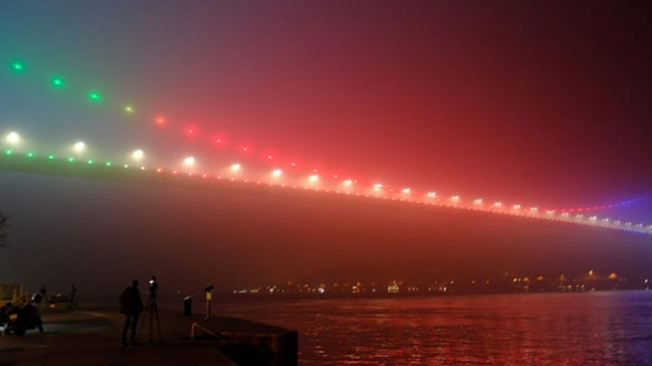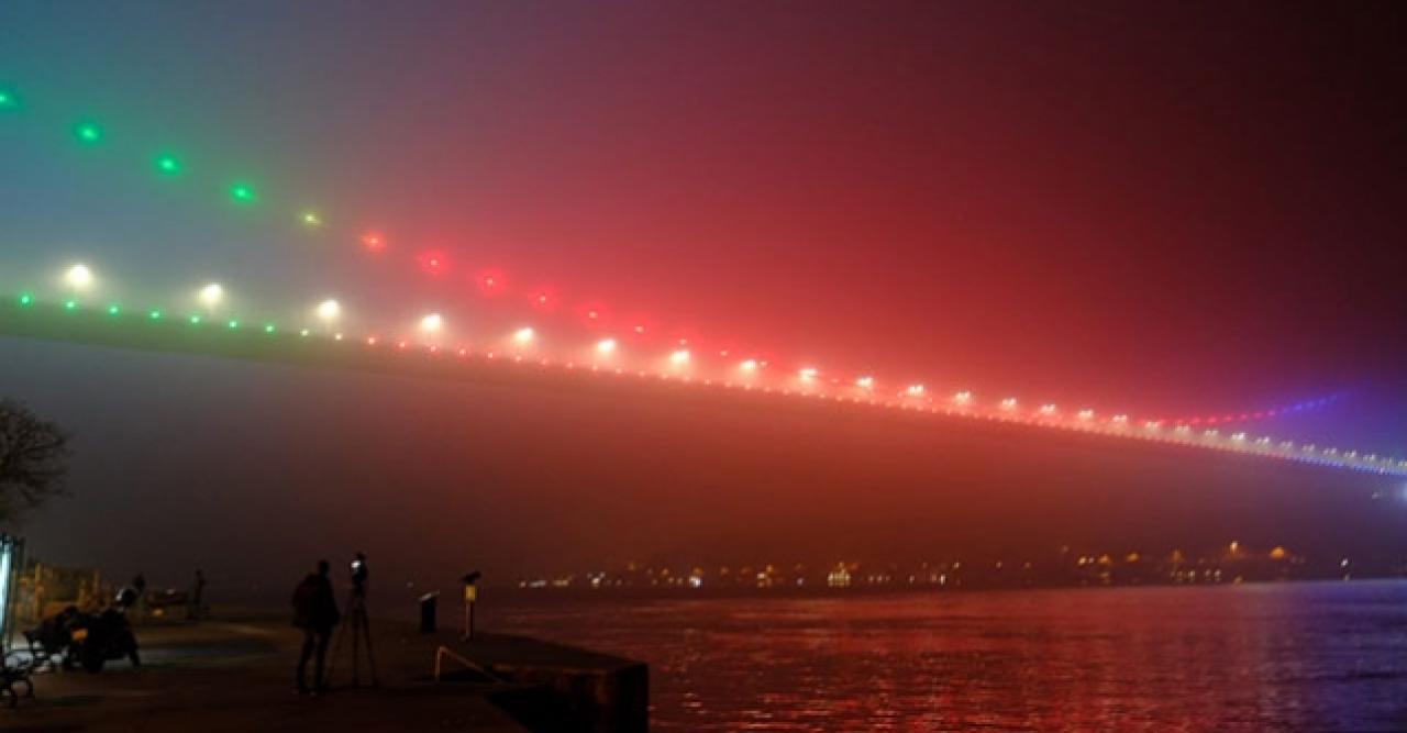 Fatih Sultan Mehmet (FSM) Köprüsü, Karabağ Zaferi'nin 1. yıl dönümü nedeniyle Azerbaycan bayrağı renklerinde ışıklandırıldı.