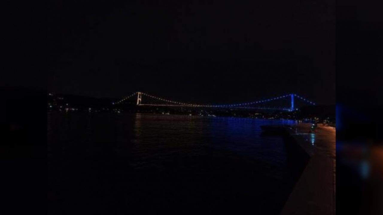 Önemli günlerde renk ve ışık gösterileriyle aydınlatılan Fatih Sultan Mehmet Köprüsü, bu kez savaştaki Ukrayna için aydınlatıldı. Ukrayna'nın bağımsızlığının 31. yılı dolayısıyla köprü Ukrayna bayrağının renklerini oluşturan mavi ve sarı renklere büründü. (DHA)