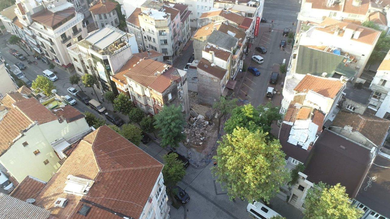 Bölgenin tarihi binalardan oluşması ve olası bir çökme riski nedeniyle etrafındaki yapılar tahliye edildi, çöken bina ise havadan görüntülendi.